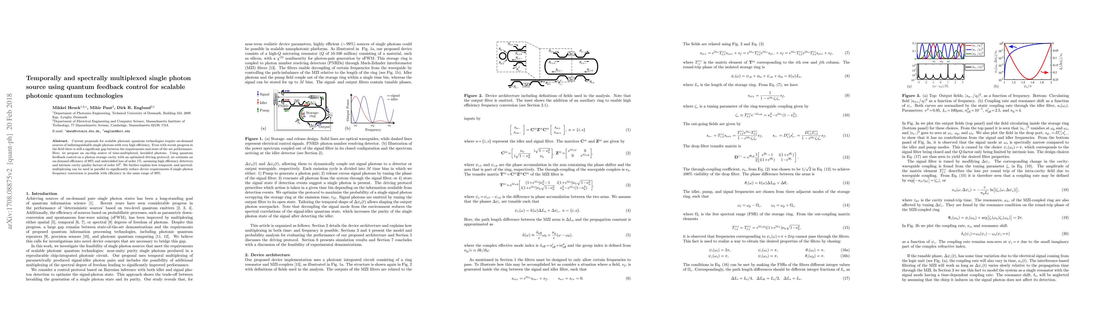 This paper proposes an on-chip source of multiplexed, heralded single photons using quantum feedback control, achieving an on-demand efficiency of 99% and unheralded loss of around 1%. The authors suggest that combining temporal and spectral multiplexing can further reduce device requirements if photon frequency conversion maintains similar efficiency.