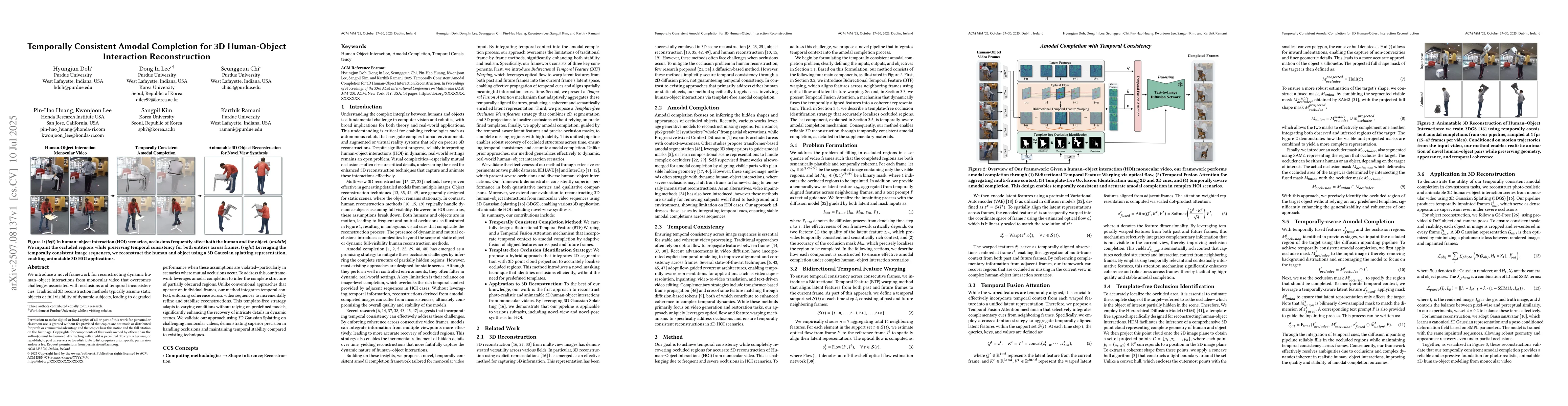 This research addresses a critical gap in the field of human-object interaction by providing a temporally consistent modal completion method that can handle various object categories and occlusion ratios.