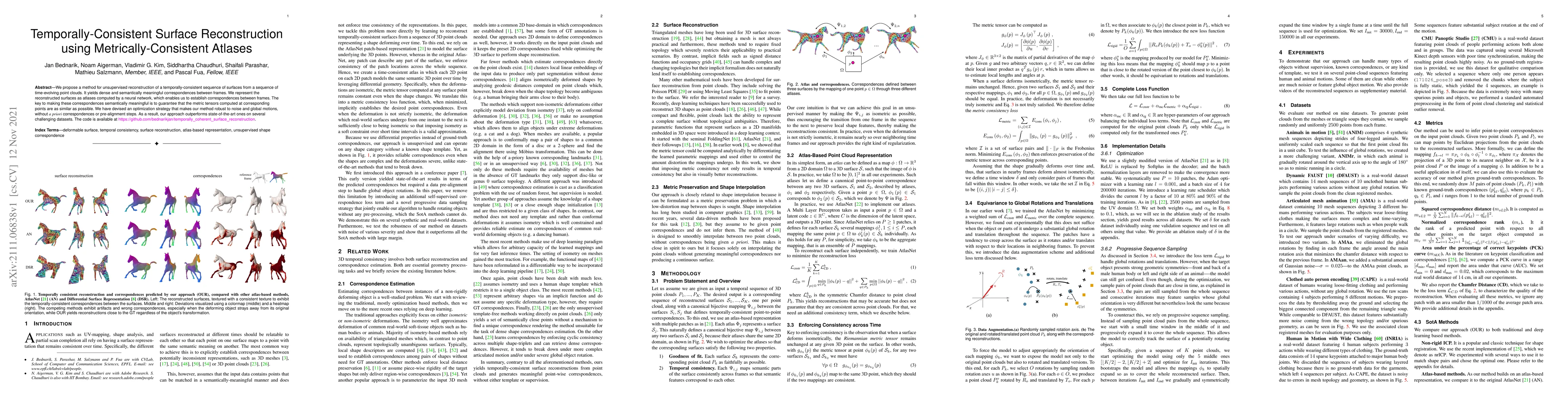 We propose a method for unsupervised reconstruction of a temporally-consistent sequence of surfaces from a sequence of time-evolving point clouds. It yields dense and semantically meaningful correspondences between frames. We represent the reconstructed surfaces as atlases computed by a neural network, which enables us to establish correspondences between frames. The key to making these correspondences semantically meaningful is to guarantee that the metric tensors computed at corresponding points are as similar as possible. We have devised an optimization strategy that makes our method robust to noise and global motions, without a priori correspondences or pre-alignment steps. As a result, our approach outperforms state-of-the-art ones on several challenging datasets. The code is available at https://github.com/bednarikjan/temporally_coherent_surface_reconstruction.