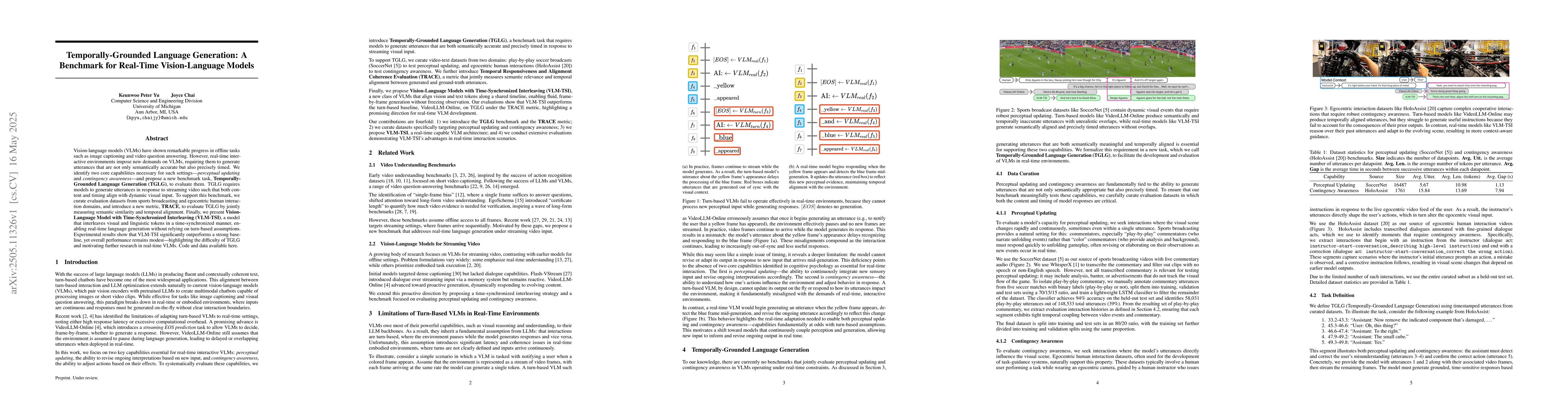 Researchers propose a new benchmark task for real-time vision-language models to generate accurate and timely language responses in interactive environments, and present a model that achieves significant improvements over a baseline.