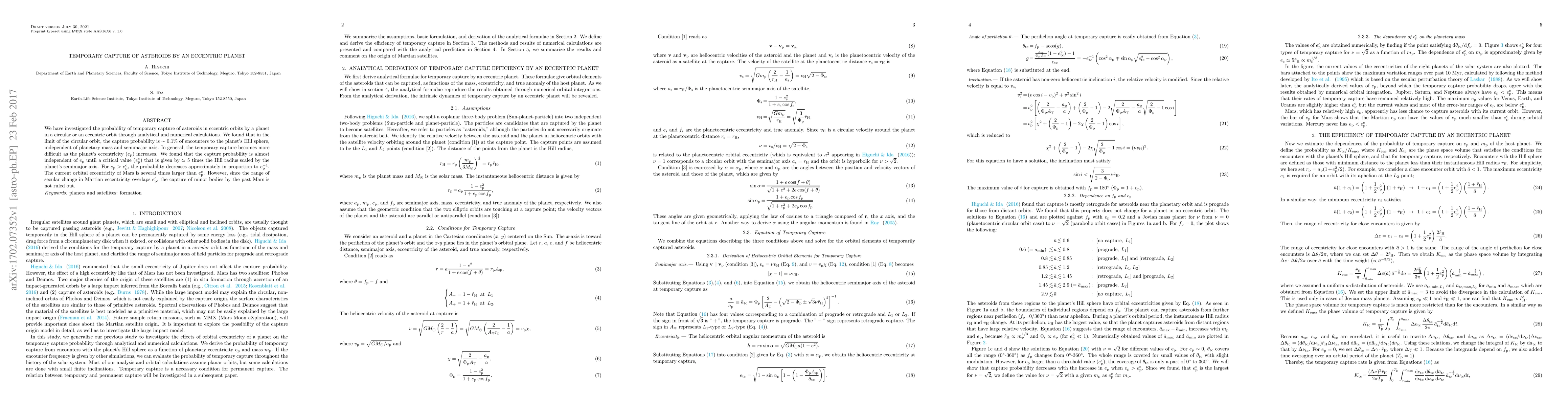 This study explores the likelihood of asteroids being temporarily captured in eccentric orbits by planets, finding that capture probability is around 0.1% for circular planetary orbits. As planetary eccentricity increases, capture becomes less probable, especially beyond a critical eccentricity value, decreasing roughly inversely proportional to eccentricity.