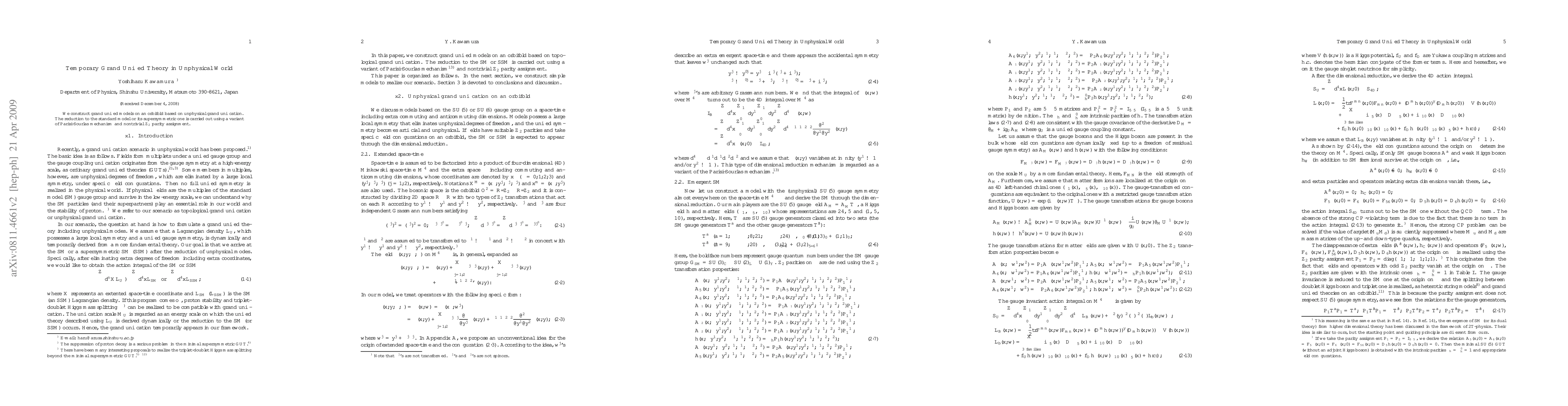Summary: This paper develops grand unified theories on an orbifold framework using unphysical grand unification, employing a modified Parisi-Sourlas mechanism and $Z_2$ parity to reduce to the Standard Model or its supersymmetric version.