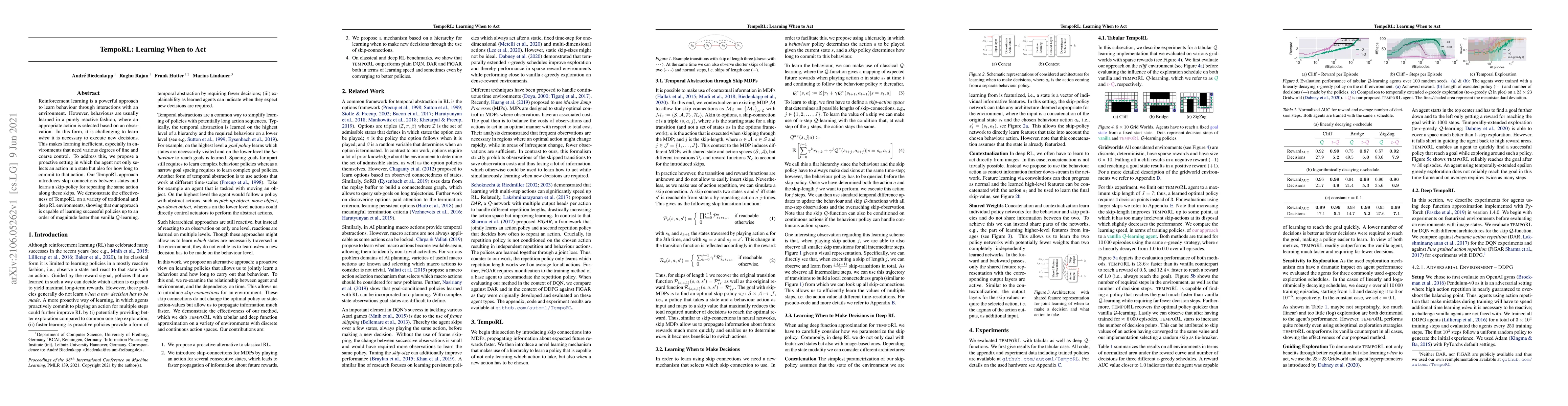 TempoRL learns to control action duration in addition to selecting actions, achieving faster learning in environments requiring fine and coarse control. TempoRL outperforms vanilla Q-learning by an order of magnitude.
