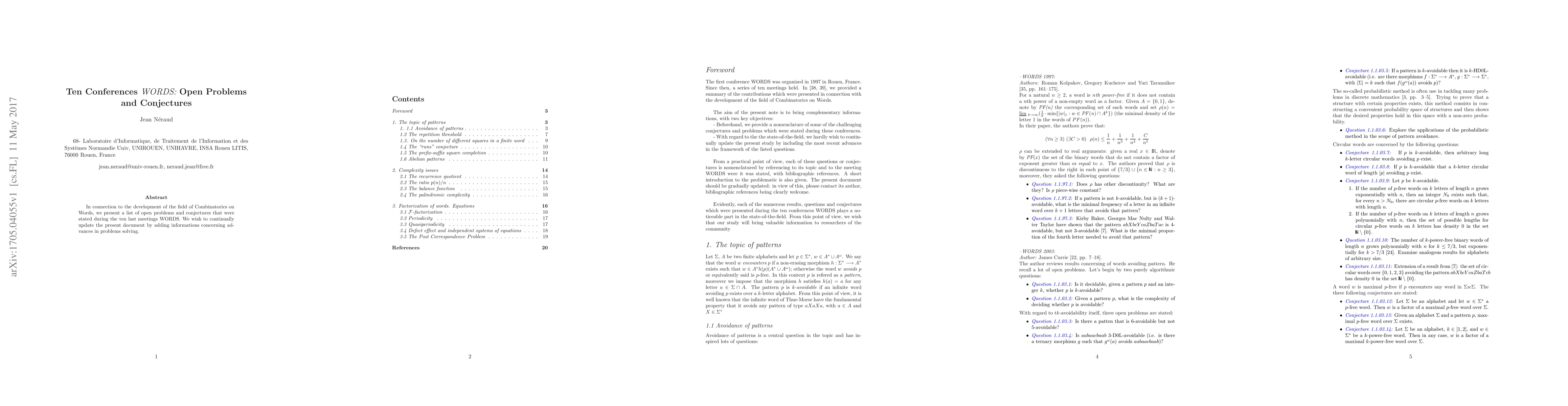 This paper presents a list of open problems and conjectures in Combinatorics on Words, compiled from ten recent conferences. It aims to update this document as new solutions to these problems emerge.