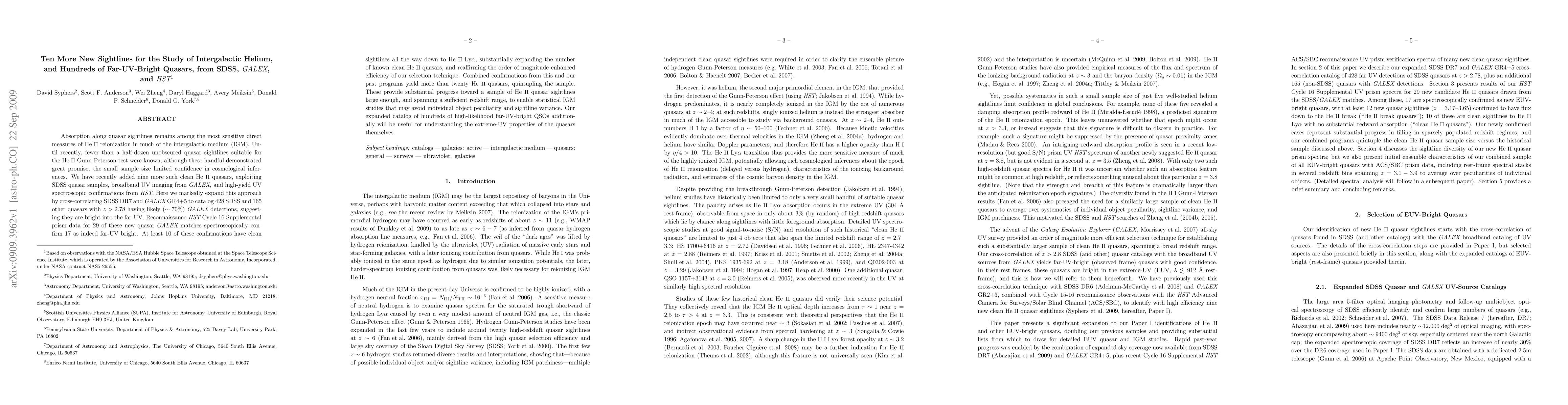 Absorption along quasar sightlines remains among the most sensitive direct measures of HeII reionization in much of the intergalactic medium (IGM). Until recently, fewer than a half-dozen unobscured quasar sightlines suitable for the HeII Gunn-Peterson test were known; although these handful demonstrated great promise, the small sample size limited confidence in cosmological inferences. We have recently added nine more such clean HeII quasars, exploiting SDSS quasar samples, broadband UV imaging from GALEX, and high-yield UV spectroscopic confirmations from HST. Here we markedly expand this approach by cross-correlating SDSS DR7 and GALEX GR4+5 to catalog 428 SDSS and 165 other quasars with z>2.78 having likely (~70%) GALEX detections, suggesting they are bright into the far-UV. Reconnaissance HST Cycle 16 Supplemental prism data for 29 of these new quasar-GALEX matches spectroscopically confirm 17 as indeed far-UV bright. At least 10 of these confirmations have clean sightlines all the way down to HeII Lyman-alpha, substantially expanding the number of known clean HeII quasars, and reaffirming the order of magnitude enhanced efficiency of our selection technique. Combined confirmations from this and our past programs yield more than twenty HeII quasars, quintupling the sample. These provide substantial progress toward a sample of HeII quasar sightlines large enough, and spanning a sufficient redshift range, to enable statistical IGM studies that may avoid individual object peculiarity and sightline variance. Our expanded catalog of hundreds of high-likelihood far-UV-bright QSOs additionally will be useful for understanding the extreme-UV properties of the quasars themselves.