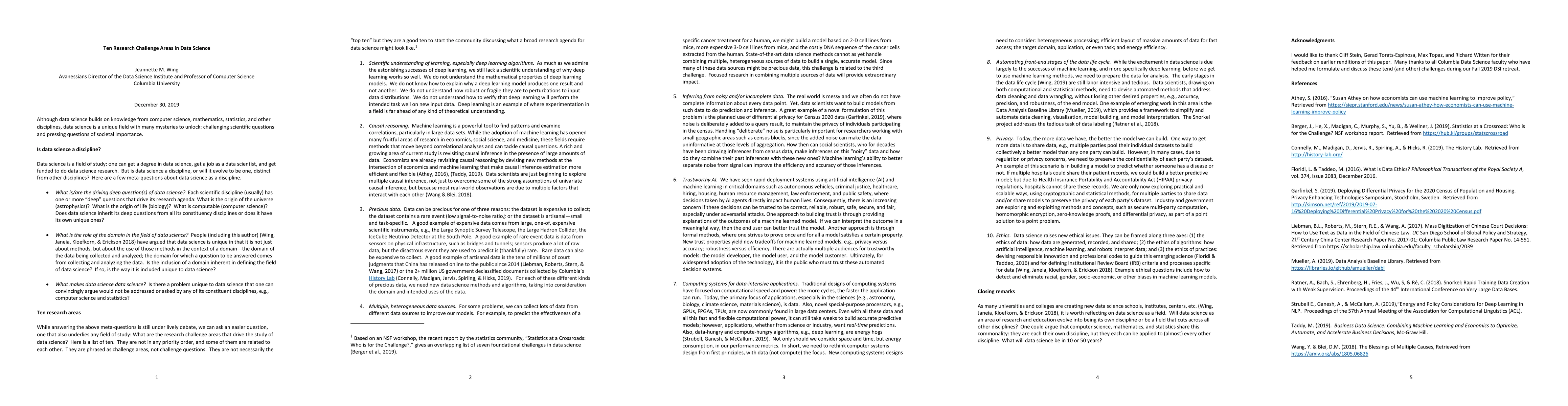 Provided a comprehensive framework for addressing key research challenge areas in data science