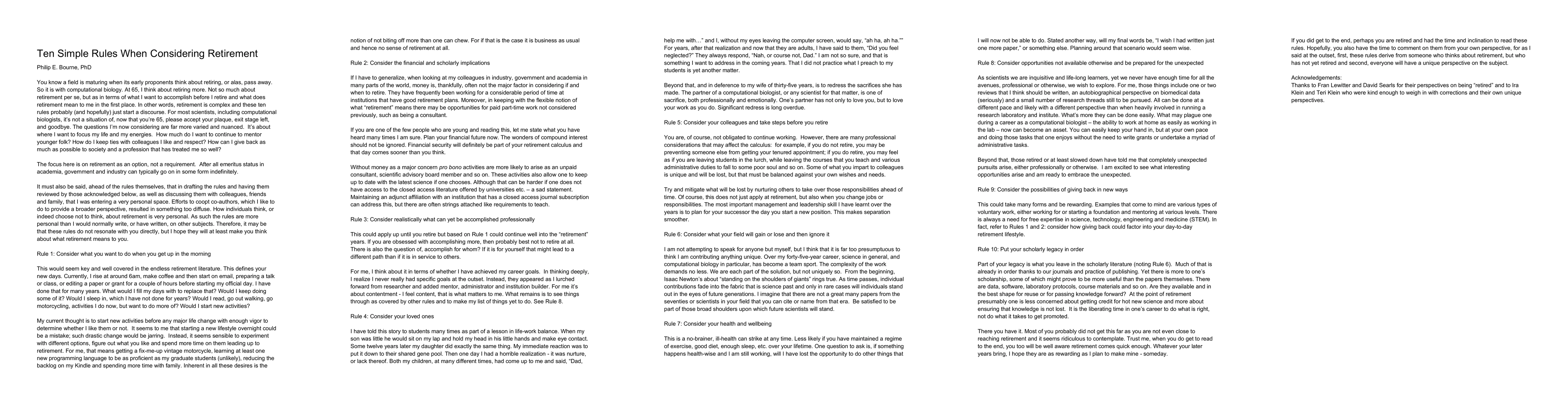 This is an article submitted to the Ten Simple Rules series of professional development articles published by PLOS Computational Biology.