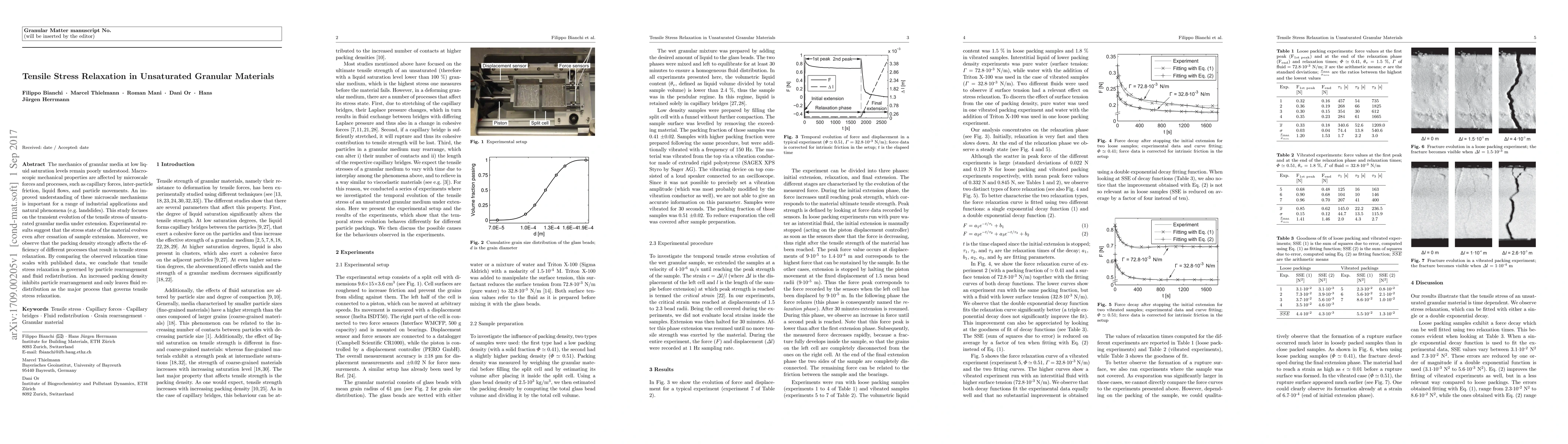 This study investigates the transient tensile stress relaxation in unsaturated granular materials, revealing that stress evolution continues post-extension and is significantly influenced by packing density. The findings suggest that particle rearrangement and fluid redistribution govern relaxation, with higher packing densities favoring fluid redistribution over particle movement.