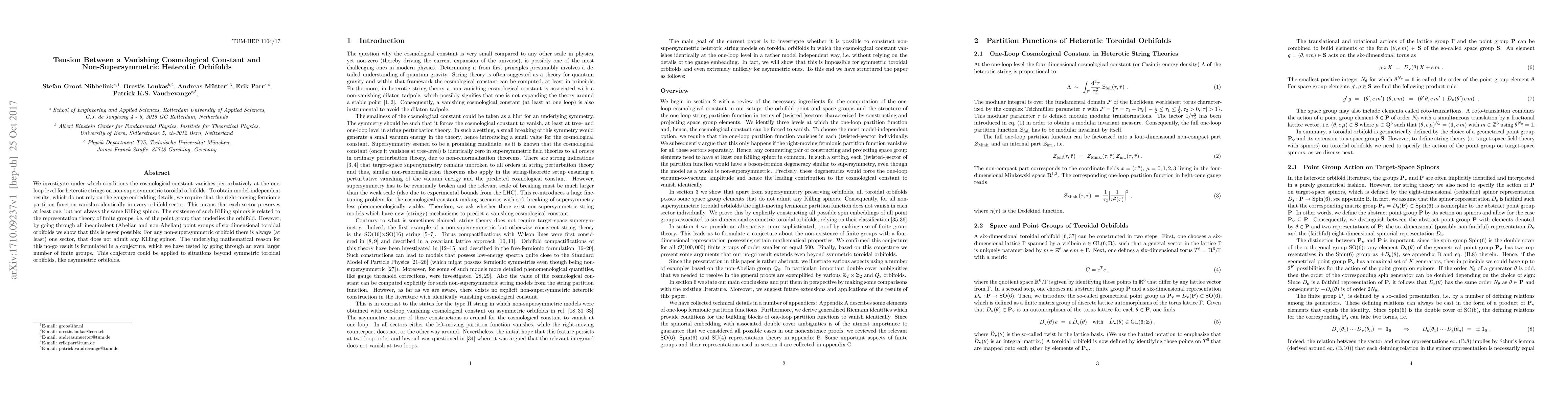 This research finds that non-supersymmetric toroidal orbifolds cannot achieve a vanishing cosmological constant perturbatively at the one-loop level, as every orbifold sector must preserve at least one Killing spinor, which is impossible for any non-supersymmetric configuration due to the representation theory of finite groups underlying the orbifold.