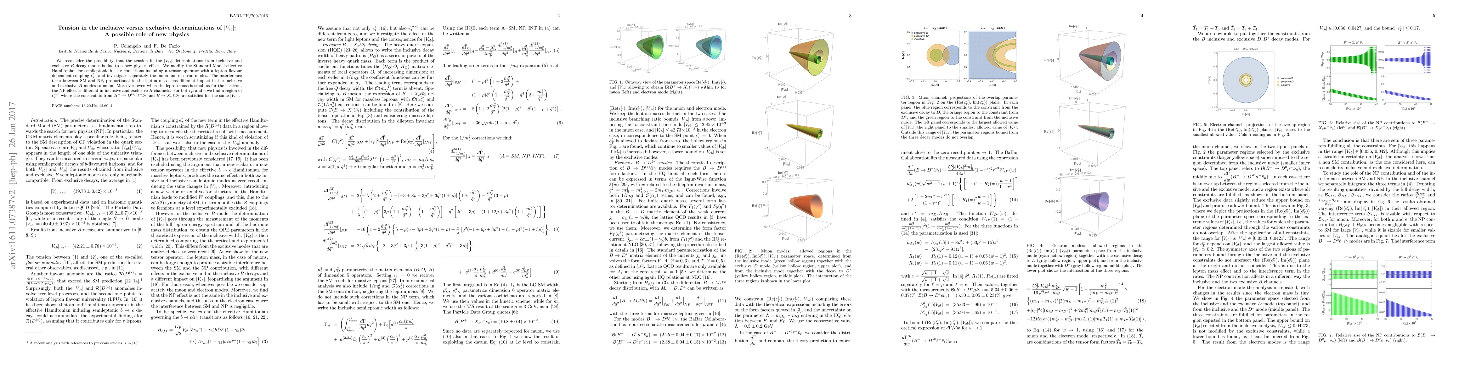 We reconsider the possibility that the tension in the $|V_{cb}|$ determinations from inclusive and exclusive $B$ decay modes is due to a new physics effect. We modify the Standard Model effective Hamiltonian for semileptonic $b \to c$ transitions including a tensor operator with a lepton flavour dependent coupling $\epsilon_T^\ell$, and investigate separately the muon and electron modes. The interference term between SM and NP, proportional to the lepton mass, has different impact in the inclusive and exclusive $B$ modes to muon. Moreover, even when the lepton mass is small as for the electron, the NP effect is different in inclusive and exclusive $B$ channels. For both $\mu$ and $e$ we find a region of $\epsilon_T^{\mu,\,e}$ where the constraints from $B^- \to D^{(*)0} \ell^- {\bar \nu}_\ell$ and $B \to X_c \, \ell \, \bar \nu_\ell$ are satisfied for the same $|V_{cb}|$.