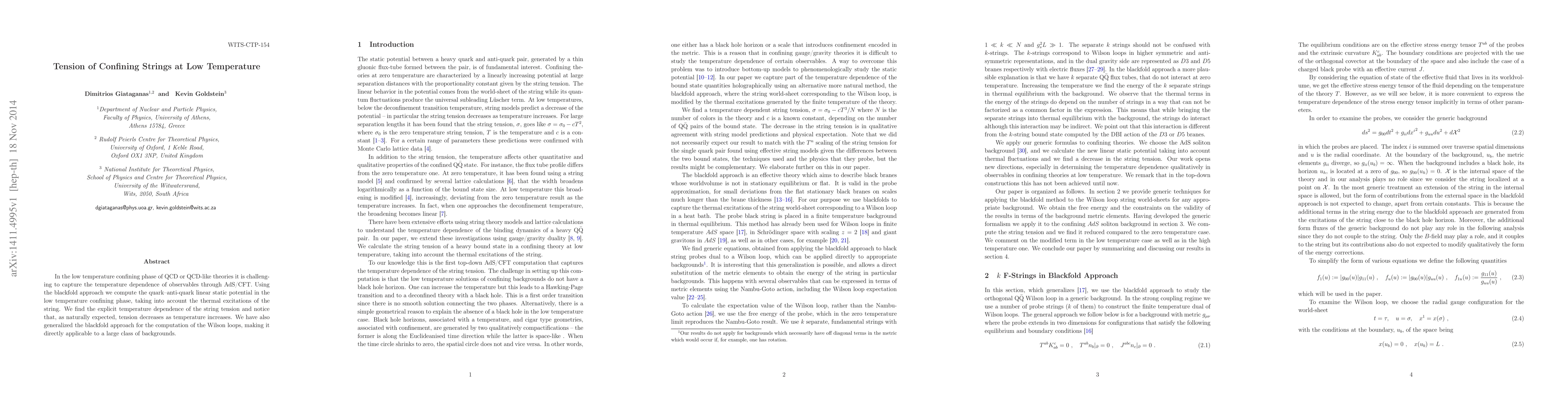In the low temperature confining phase of QCD or QCD-like theories it is challenging to capture the temperature dependence of observables through AdS/CFT. Using the blackfold approach we compute the quark-antiquark linear static potential in the low temperature confining phase, taking into account the thermal excitations of the string. We find the explicit temperature dependence of the string tension and notice that, as naturally expected, tension decreases as temperature increases. We have also generalized the blackfold approach for the computation of the Wilson loops, making it directly applicable to a large class of backgrounds.