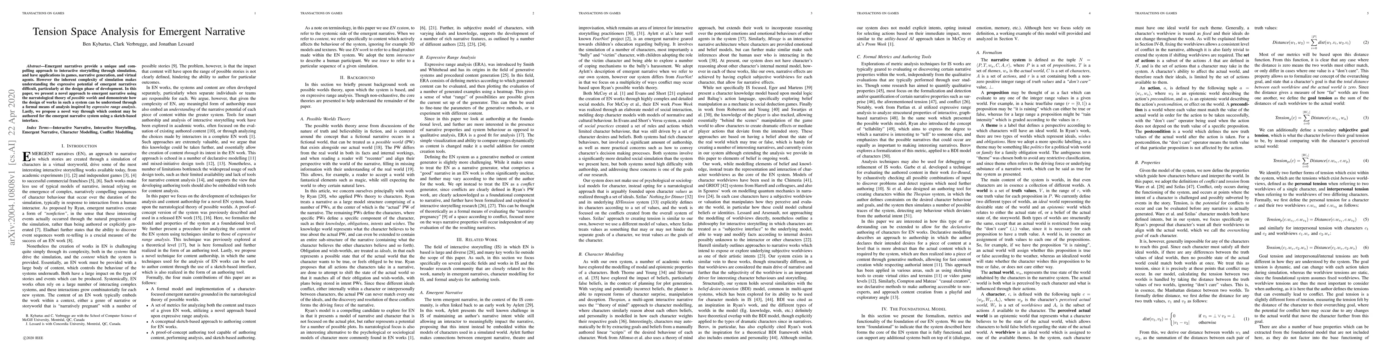 Emergent narratives provide a unique and compelling approach to interactive storytelling through simulation, and have applications in games, narrative generation, and virtual agents. However the inherent complexity of simulation makes understanding the expressive potential of emergent narratives difficult, particularly at the design phase of development. In this paper, we present a novel approach to emergent narrative using the narratological theory of possible worlds and demonstrate how the design of works in such a system can be understood through a formal means of analysis inspired by expressive range analysis. Lastly, we propose a novel way through which content may be authored for the emergent narrative system using a sketch-based interface.