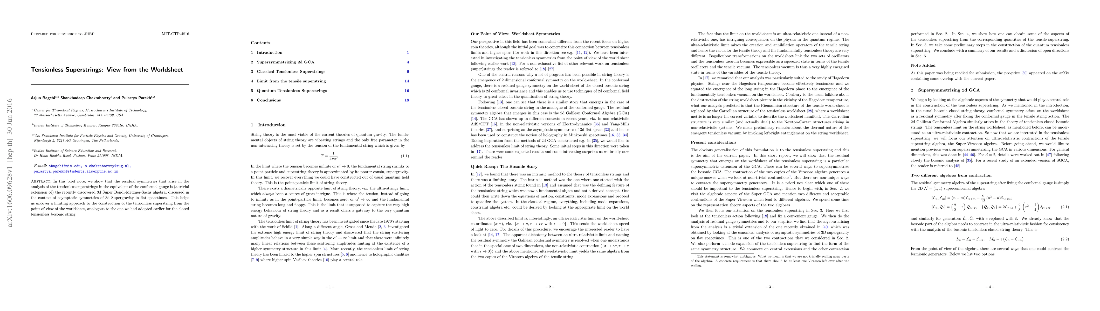 In this brief note, we show that the residual symmetries that arise in the analysis of the tensionless superstrings in the equivalent of the conformal gauge is (a trivial extension of) the recently discovered 3d Super Bondi-Metzner-Sachs algebra, discussed in the context of asymptotic symmetries of 3d Supergravity in flat-spacetimes. This helps us uncover a limiting approach to the construction of the tensionless superstring from the point of view of the worldsheet, analogous to the one we had adopted earlier for the closed tensionless bosonic string.