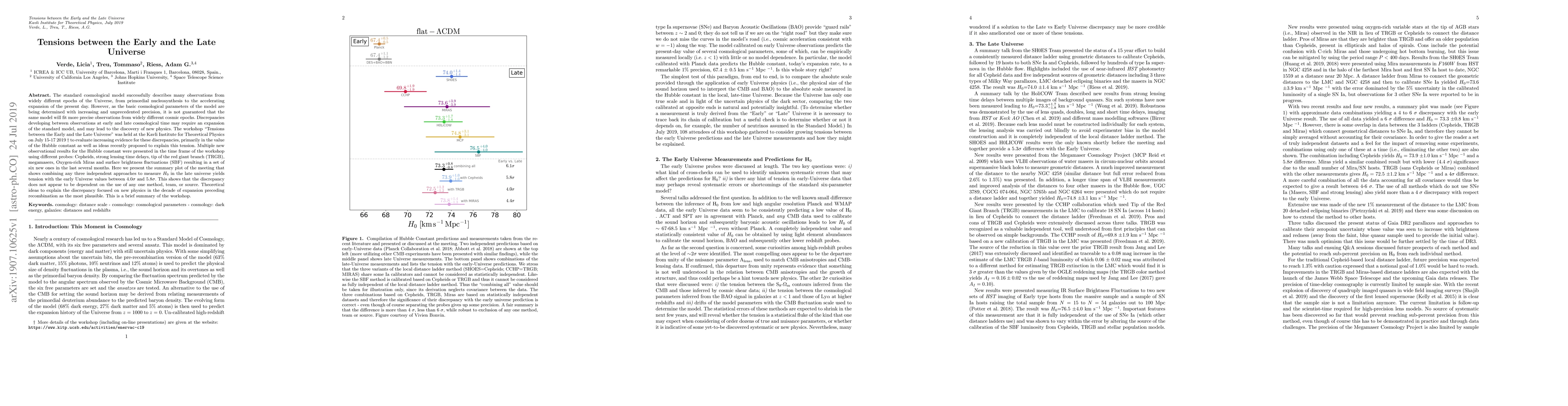 The standard cosmological model successfully describes many observations from widely different epochs of the Universe, from primordial nucleosynthesis to the accelerating expansion of the present day. However, as the basic cosmological parameters of the model are being determined with increasing and unprecedented precision, it is not guaranteed that the same model will fit more precise observations from widely different cosmic epochs. Discrepancies developing between observations at early and late cosmological time may require an expansion of the standard model, and may lead to the discovery of new physics. The workshop "Tensions between the Early and the Late Universe" was held at the Kavli Institute for Theoretical Physics on July 15-17 2019 (More details of the workshop (including on-line presentations) are given at the website: https://www.kitp.ucsb.edu/activities/enervac-c19) to evaluate increasing evidence for these discrepancies, primarily in the value of the Hubble constant as well as ideas recently proposed to explain this tension. Multiple new observational results for the Hubble constant were presented in the time frame of the workshop using different probes: Cepheids, strong lensing time delays, tip of the red giant branch (TRGB), megamasers, Oxygen-rich Miras and surface brightness fluctuations (SBF) resulting in a set of six new ones in the last several months. Here we present the summary plot of the meeting that shows combining any three independent approaches to measure H$_0$ in the late universe yields tension with the early Universe values between 4.0$\sigma$ and 5.8$\sigma$. This shows that the discrepancy does not appear to be dependent on the use of any one method, team, or source. Theoretical ideas to explain the discrepancy focused on new physics in the decade of expansion preceding recombination as the most plausible. This is a brief summary of the workshop.