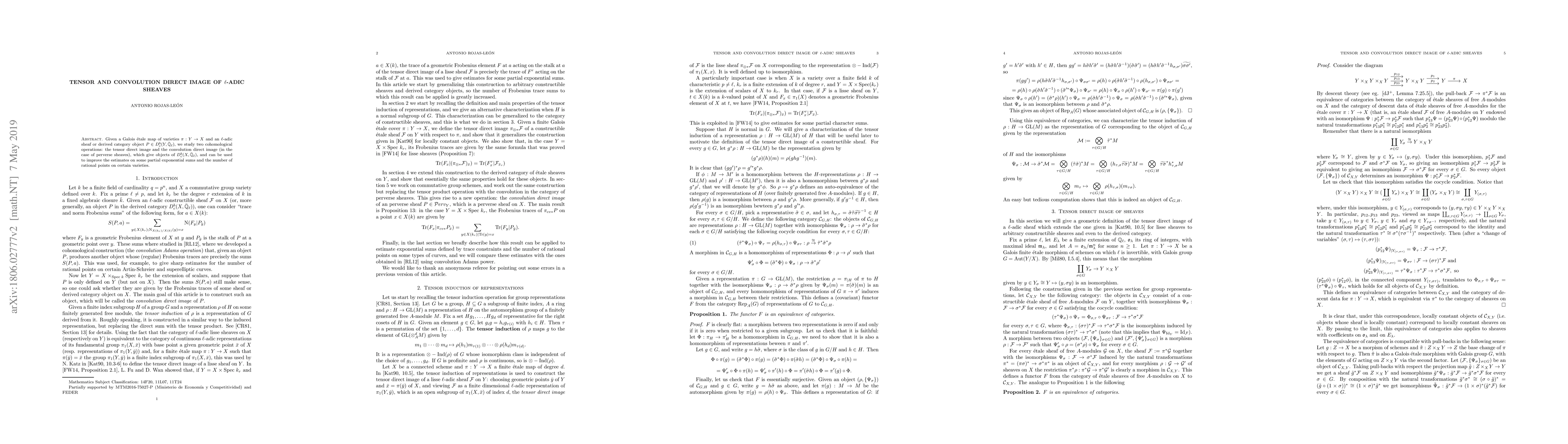 Given a Galois \'etale map of varieties $\pi:Y\to X$ and an $\ell$-adic sheaf or derived category object $P\in D^b_c(Y,{\mathbb Q}_\ell)$, we study two cohomological operations: the tensor direct image and (in the case of perverse sheaves) the convolution direct image, which give objects of $D^b_c(X,{\mathbb Q}_\ell)$, and can be used to improve the estimates on some partial exponential sums and the number of rational points on certain varieties.