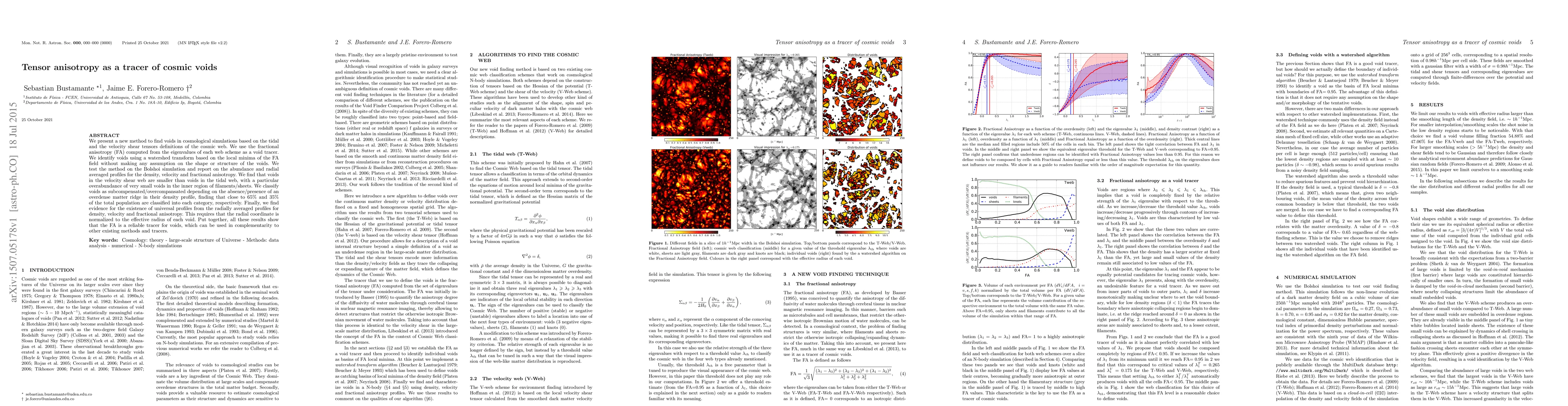 We present a new method to find voids in cosmological simulations based on the tidal and the velocity shear tensors definitions of the cosmic web. We use the fractional anisotropy (FA) computed from the eigenvalues of each web scheme as a void tracer. We identify voids using a watershed transform based on the local minima of the FA field without making any assumption on the shape or structure of the voids. We test the method on the Bolshoi simulation and report on the abundance and radial averaged profiles for the density, velocity and fractional anisotropy. We find that voids in the velocity shear web are smaller than voids in the tidal web, with a particular overabundance of very small voids in the inner region of filaments/sheets. We classify voids as subcompensated/overcompansated depending on the absence/presence of an overdense matter ridge in their density profile, finding that close to $65\%$ and $35\%$ of the total population are classified into each category, respectively. Finally, we find evidence for the existence of universal profiles from the radially averaged profiles for density, velocity and fractional anisotropy. This requires that the radial coordinate is normalized to the effective radius of each void. Put together, all these results show that the FA is a reliable tracer for voids, which can be used in complementarity to other existing methods and tracers.