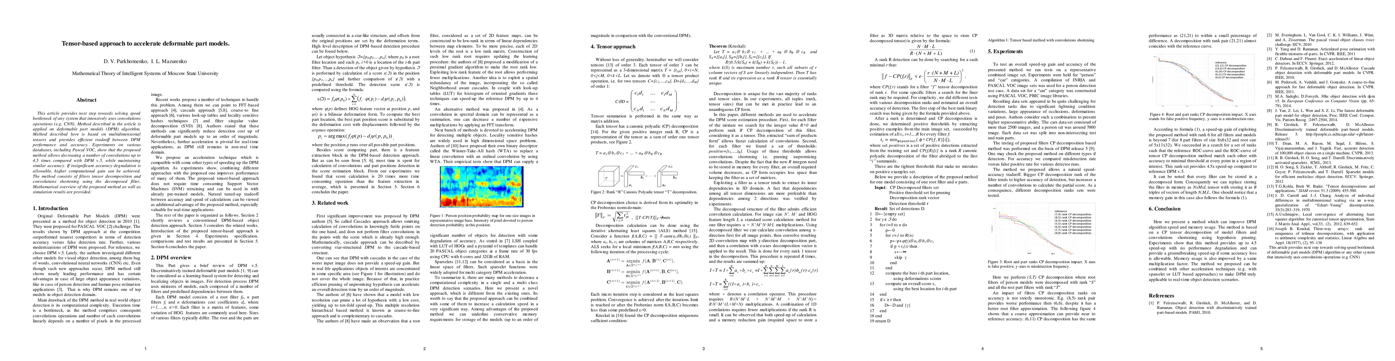 A new method using tensor decomposition accelerates deformable part models by up to 4.5 times while maintaining similar accuracy, offering a tradeoff between performance and computational gain.