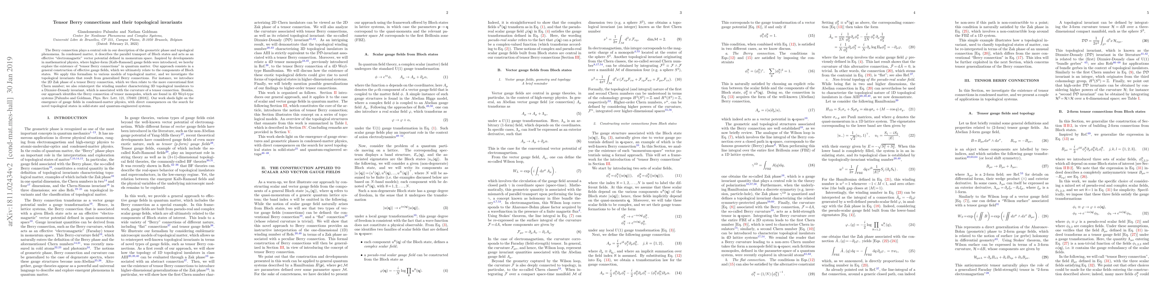This paper explores the concept of tensor Berry connections and their topological invariants in quantum matter, constructing effective gauge fields related to Bloch states. It introduces new topological invariants, such as the 2D Zak phase and reinterprets 3D topological insulators' winding number as a Dixmier-Douady invariant, highlighting the potential for novel topological states in condensed-matter systems.