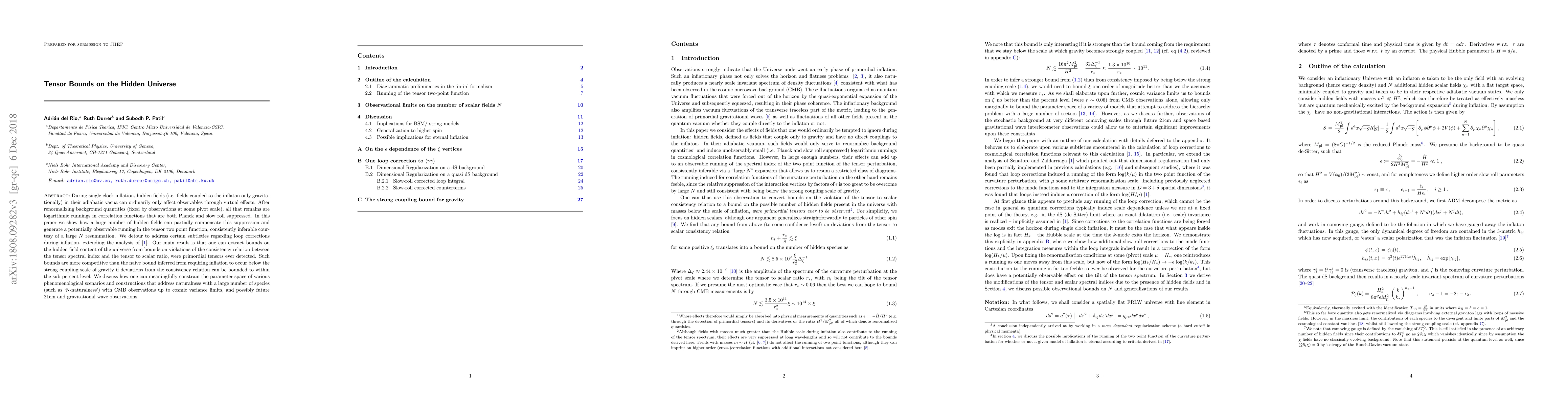 This paper investigates how hidden fields during inflation can affect tensor observables, showing that a large number of such fields can generate observable running in the tensor two-point function. It derives competitive bounds on hidden field content from consistency relation violations in primordial tensors, suggesting that future observations could constrain scenarios with many species more effectively than current gravitational bounds.