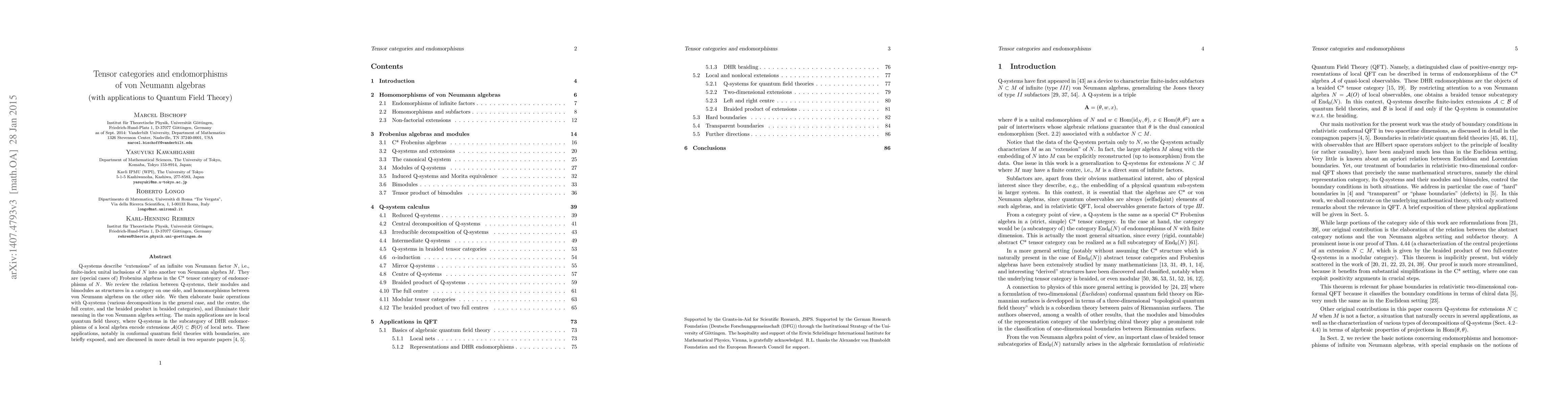 Q-systems describe "extensions" of an infinite von Neumann factor $N$, i.e., finite-index unital inclusions of $N$ into another von Neumann algebra $M$. They are (special cases of) Frobenius algebras in the C* tensor category of endomorphisms of $N$. We review the relation between Q-systems, their modules and bimodules as structures in a category on one side, and homomorphisms between von Neumann algebras on the other side. We then elaborate basic operations with Q-systems (various decompositions in the general case, and the centre, the full centre, and the braided product in braided categories), and illuminate their meaning in the von Neumann algebra setting. The main applications are in local quantum field theory, where Q-systems in the subcategory of DHR endomorphisms of a local algebra encode extensions $A(O)\subset B(O)$ of local nets. These applications, notably in conformal quantum field theories with boundaries, are briefly exposed, and are discussed in more detail in two separate papers [arXiv:1405.7863, 1410.8848].
