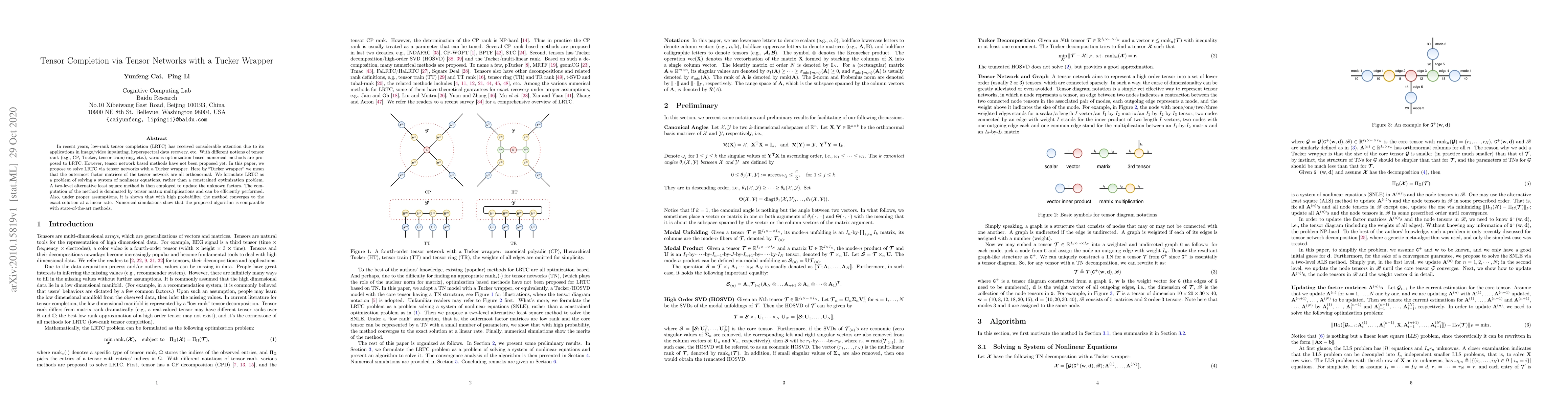This paper proposes a novel tensor completion method using tensor networks wrapped with Tucker decomposition, solving low-rank tensor completion as a system of nonlinear equations. The method employs a two-level alternative least squares approach and demonstrates efficient computation and linear convergence to the exact solution.