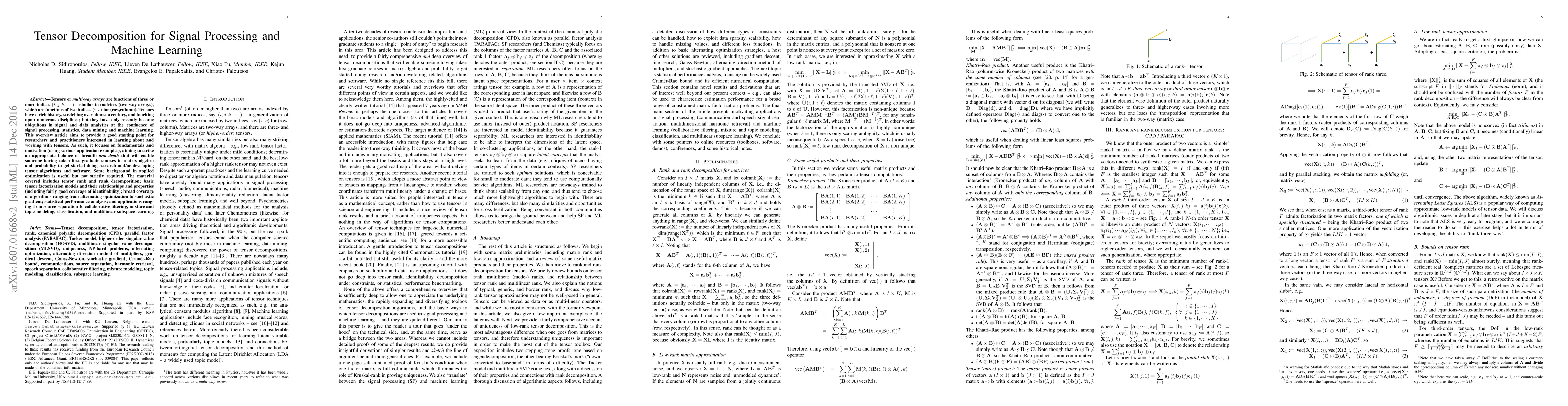 This paper provides an accessible overview of tensor decomposition techniques for signal processing and machine learning, focusing on fundamental concepts and practical applications. It covers tensor rank, factorization models, algorithms, and performance analysis, along with applications in source separation, collaborative filtering, and classification.