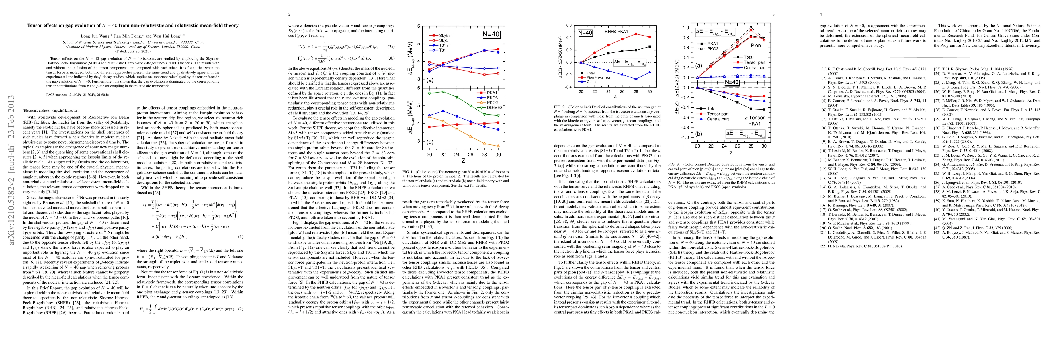 This paper investigates tensor effects on the N=40 gap evolution in N=40 isotones using non-relativistic and relativistic mean-field theories. Both Skyrme-Hartree-Fock-Bogoliubov and relativistic Hartree-Fock-Bogoliubov approaches show that including tensor forces aligns with experimental data, emphasizing the tensor force's role in N=40 subshell evolution.