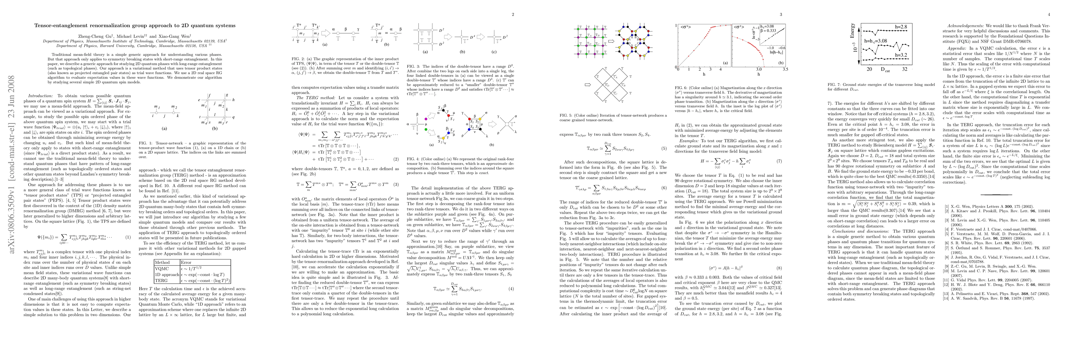 This paper introduces a tensor-entanglement renormalization group method for studying 2D quantum systems with long-range entanglement, such as topological phases, using projected entangled pair states and a 2D real space RG algorithm. The method is demonstrated through analysis of several simple 2D quantum spin models.