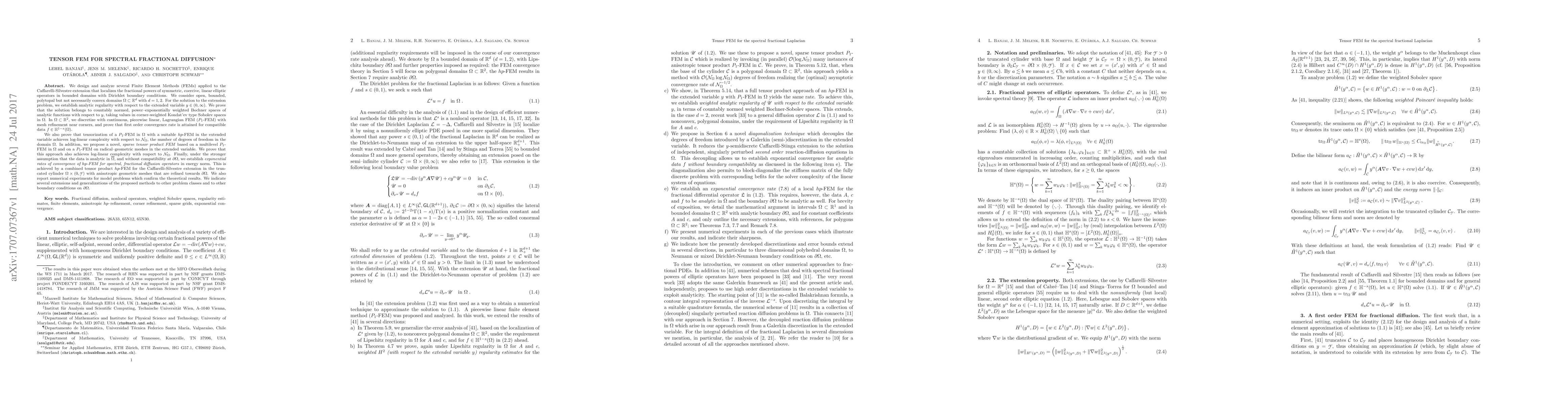 This paper develops Finite Element Methods (FEMs) for solving spectral fractional diffusion problems, proving convergence rates and complexity. It introduces tensor FEM and sparse tensor product FEM approaches achieving log-linear complexity, and provides numerical experiments confirming the theoretical results.