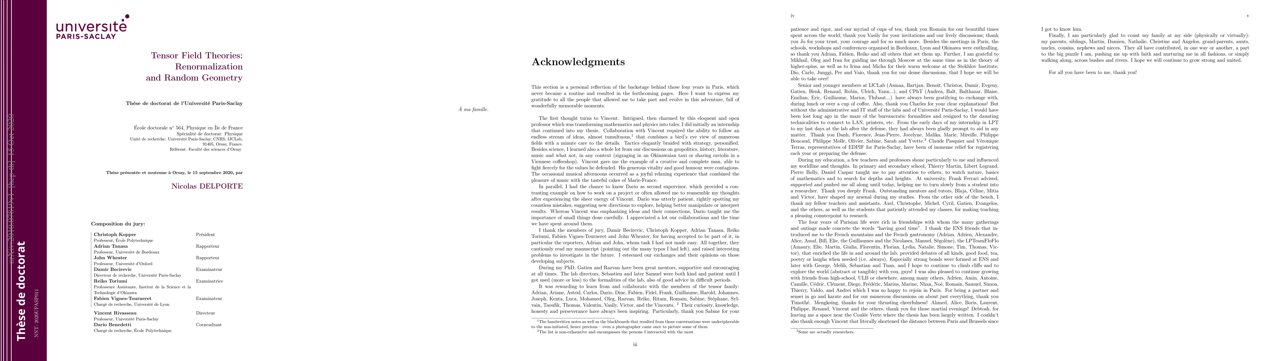 This thesis focuses on renormalization of quantum field theories. Its first part considers three tensor models in three dimensions, a Fermionic quartic with tensors of rank-3 and two Bosonic sextic, of ranks 3 and 5. We rely upon the large-$N$ melonic expansion of tensor models. For the first model, invariant under $U(N)^3$, we obtain the RG flow of the two melonic couplings and the vacuum phase diagram, from a reformulation with a diagonalizable matrix intermediate field. The discrete chiral symmetry breaks spontaneously and we compare with the three-dimensional Gross-Neveu model. Beyond the massless $U(N)^3$ symmetric phase, we also observe a massive phase of same symmetry and another where the symmetry breaks into $U(N^2)\times U(N/2)\times U(N/2)$. A matrix model invariant under $U(N)\times U(N^2)$, with close properties, is also studied. For the other models, with symmetry groups $U(N)^3$ and $O(N)^5$, a non-melonic coupling (the "wheel") with an optimal scaling in $N$ drives us to a generalized melonic expansion. The kinetic terms are taken of short- and long-range, and we analyze perturbatively, at large-$N$, the RG flows of the sextic couplings up to four loops. Only the rank-3 model displays non-trivial fixed points (two real Wilson-Fisher-like in the short-range case and a line of fixed points in the other). We finally obtain the real conformal dimensions of the primary bilinear operators. In the second part, we establish the first results of perturbative multi-scale renormalization for a quartic scalar field on critical Galton-Watson trees, with a long-range kinetic term. At criticality, an emergent infinite spine provides a space of effective dimension $4/3$ on which to compute averaged correlation fonctions. This approach formalizes the notion of a QFT on a random geometry. We use known probabilistic bounds on the heat-kernel on a random graph reviewed in detail.