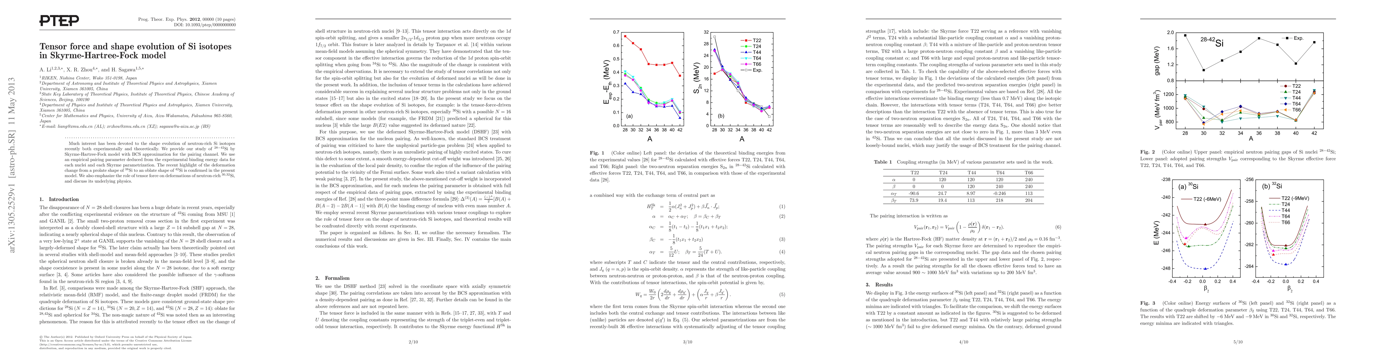 This paper investigates the shape evolution of neutron-rich Si isotopes ($^{28-42}$Si) using the Skyrme-Hartree-Fock model with BCS pairing, confirming the deformation change from prolate to oblate shapes. It highlights the influence of tensor force on deformations in $^{30,32}$Si and discusses the underlying physics.