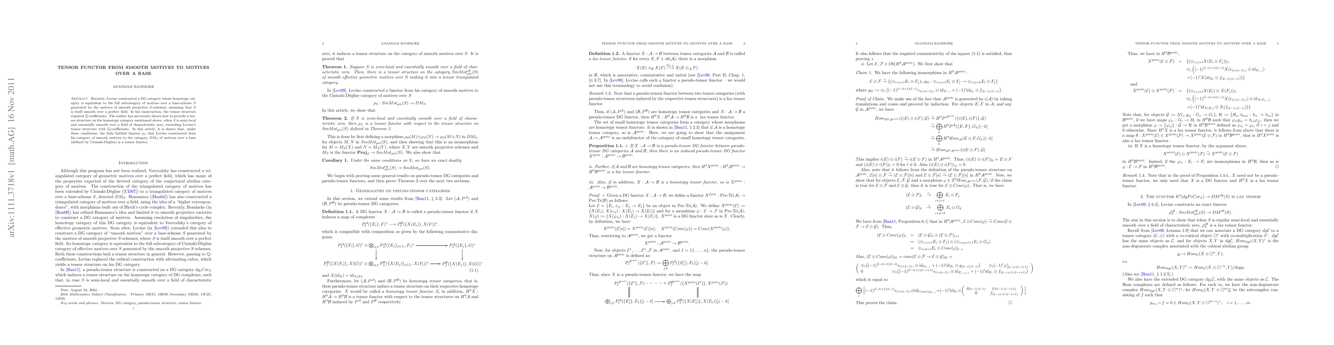 Researchers show that a functor from smooth motives to motives over a base-scheme is a tensor functor under specific conditions, extending previous work and providing new insights into the structure of motives.