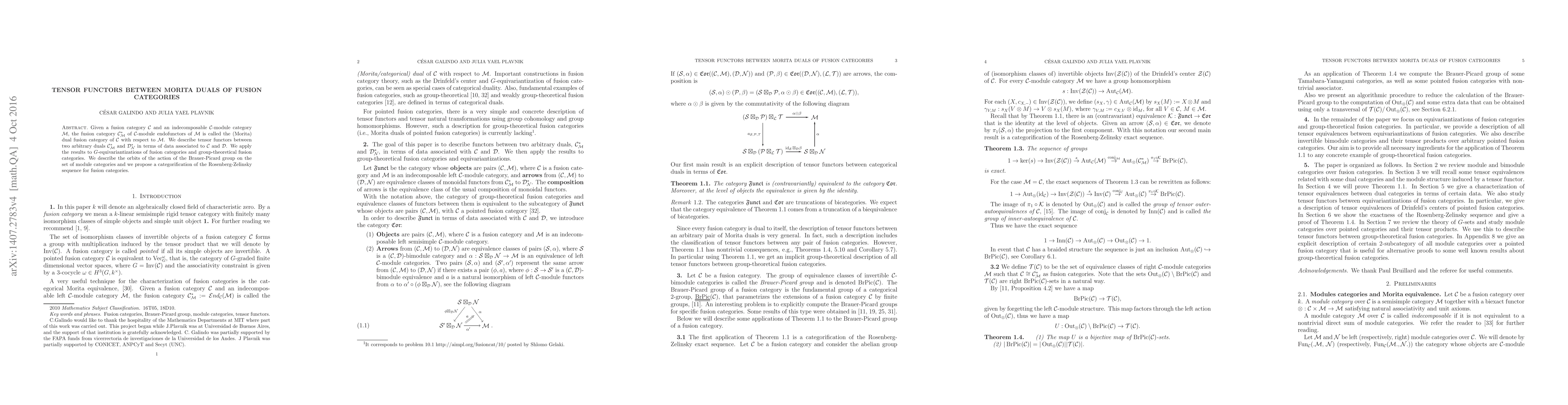 This paper investigates tensor functors between Morita duals of fusion categories, describing their structure in terms of data from the original fusion categories. It applies these findings to $G$-equivariantizations and proposes a categorification of the Rosenberg-Zelinsky sequence.