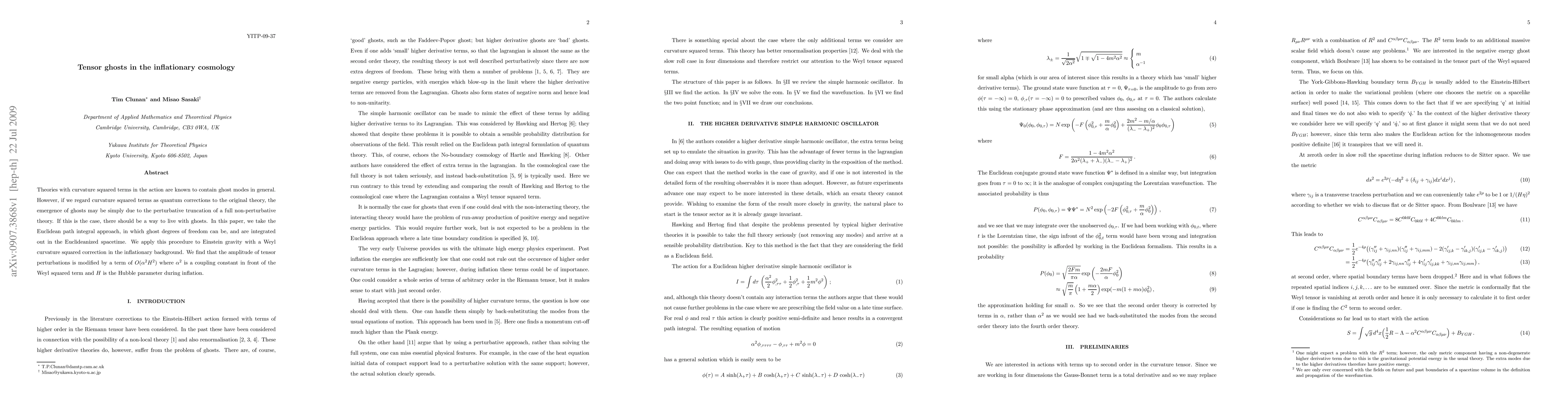 This paper explores the possibility of coexisting with ghost modes in theories with curvature squared terms, often associated with ghosts. By using the Euclidean path integral approach to integrate out ghost degrees of freedom, the authors apply this to Einstein gravity with Weyl curvature squared corrections in an inflationary background. They discover that tensor perturbation amplitudes are altered by a term O(alpha^2 H^2), where alpha^2 is a coupling constant and H is the Hubble parameter during inflation.