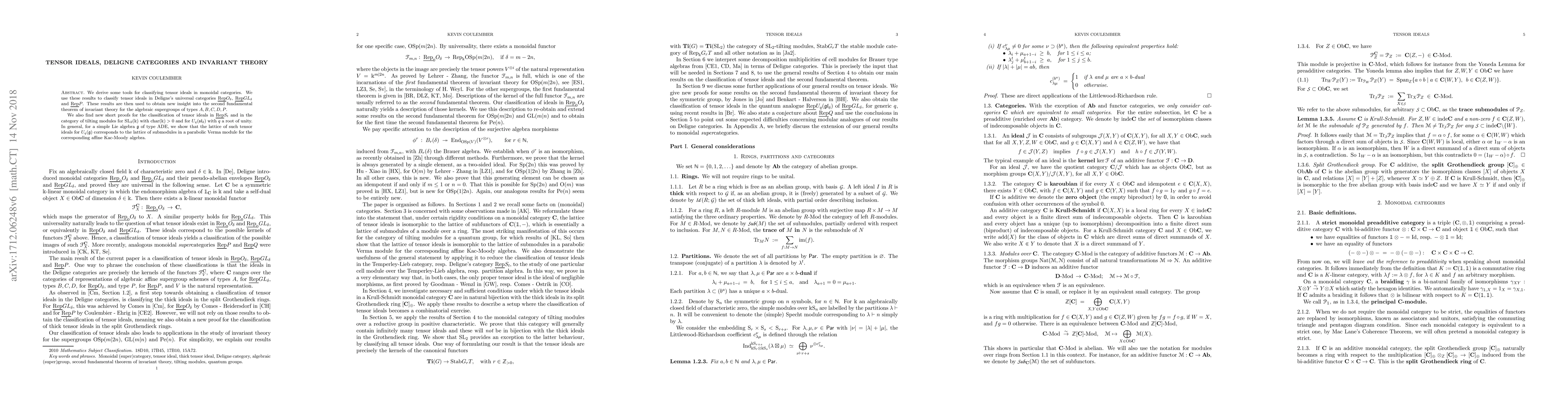 Researchers developed tools to classify tensor ideals in monoidal categories, leading to new insights into invariant theory for algebraic supergroups and the classification of tensor ideals in specific categories.