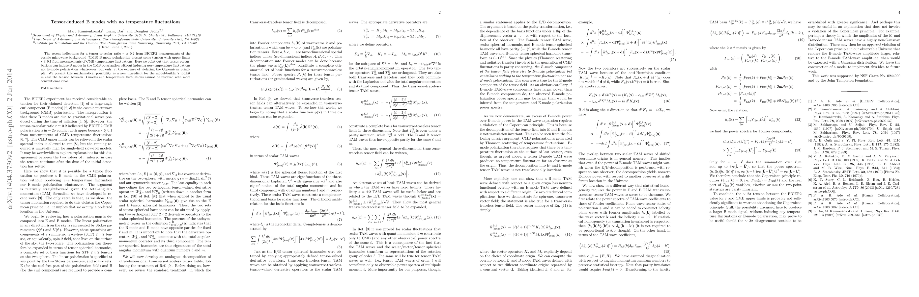 The recent indications for a tensor-to-scalar ratio $ r \simeq 0.2$ from BICEP2 measurements of the cosmic microwave background (CMB) B-mode polarization present some tension with upper limits $r \lesssim 0.1$ from measurements of CMB temperature fluctuations. Here we point out that tensor perturbations can induce B modes in the CMB polarization without inducing any temperature fluctuations nor E-mode polarization whatsoever, but only, at the expense of violating the Copernican principle. We present this mathematical possibility as a new ingredient for the model-builder's toolkit in case the tension between B modes and temperature fluctuations cannot be resolved with more conventional ideas.
