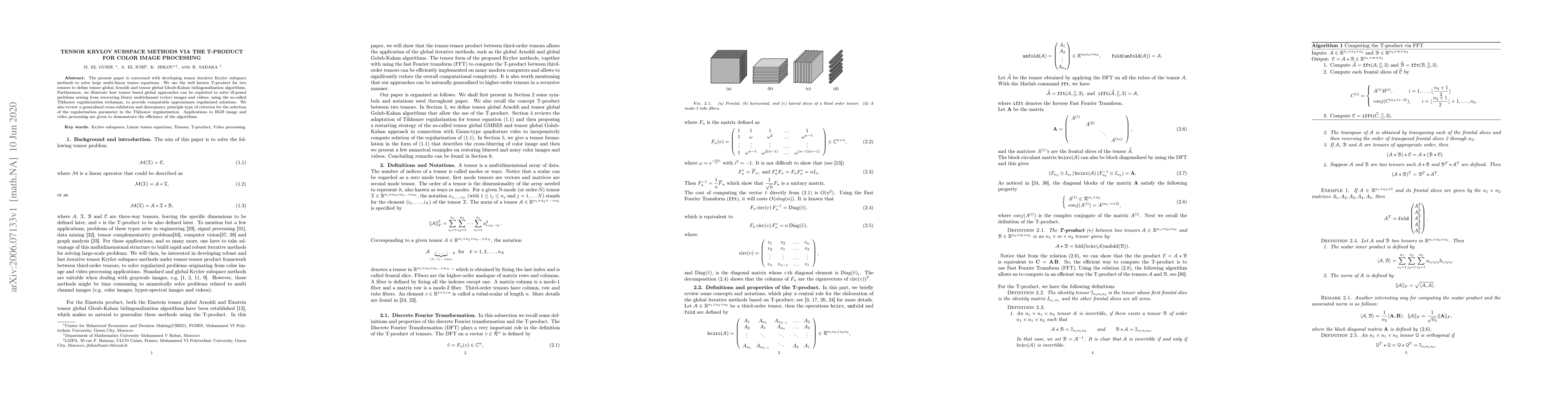 The present paper is concerned with developing tensor iterative Krylov subspace methods to solve large multi-linear tensor equations. We use the well-known T-product for two tensors to define tensor global Arnoldi and tensor global Gloub-Kahan bidiagonalization algorithms. Furthermore, we illustrate how tensor-based global approaches can be exploited to solve ill-posed problems arising from recovering blurry multichannel (color) images and videos, using the so-called Tikhonov regularization technique, to provide computable approximate regularized solutions. We also review a generalized cross-validation and discrepancy principle type of criterion for the selection of the regularization parameter in the Tikhonov regularization. Applications to RGB image and video processing are given to demonstrate the efficiency of the algorithms.