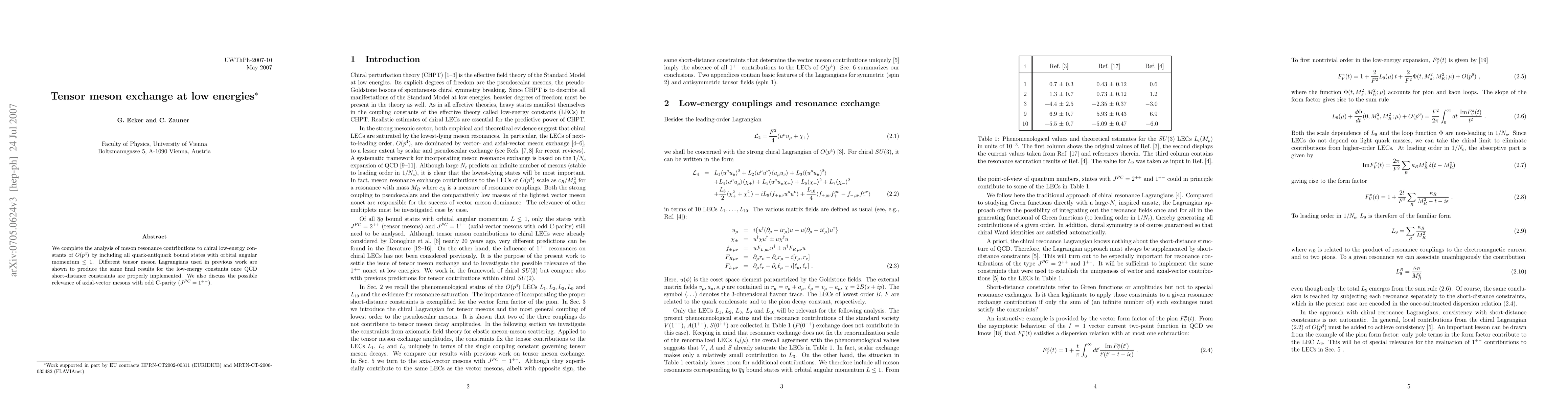 We complete the analysis of meson resonance contributions to chiral low-energy constants of O(p^4) by including all quark-antiquark bound states with orbital angular momentum less or equal to one. Different tensor meson Lagrangians used in previous work are shown to produce the same final results for the low-energy constants once QCD short-distance constraints are properly implemented. We also discuss the possible relevance of axial-vector mesons with odd C-parity.