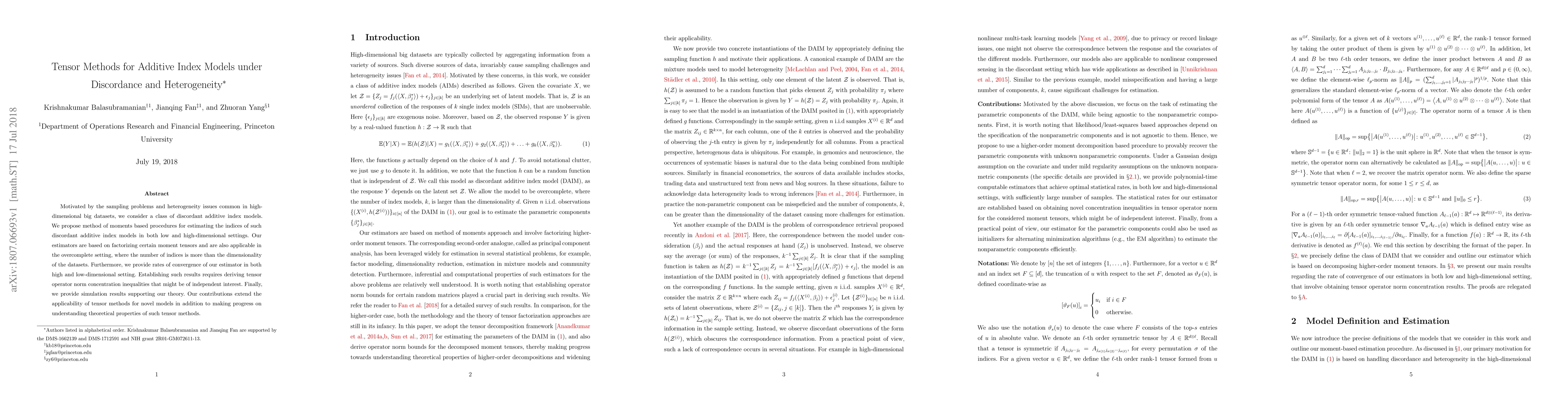 Researchers develop methods to estimate additive index models in high-dimensional datasets with discordance and heterogeneity, providing new approaches for analyzing complex data.
