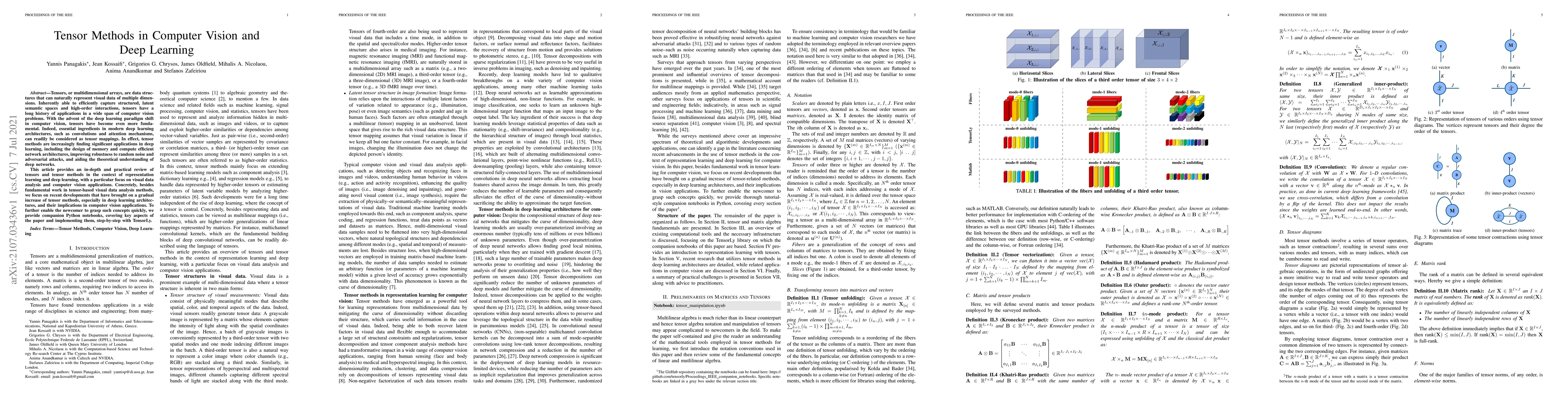 This paper reviews tensor methods in computer vision and deep learning, emphasizing their role in representation learning and visual data analysis. It highlights recent advancements in tensor-based architectures and their applications in enhancing network efficiency, robustness, and theoretical understanding.