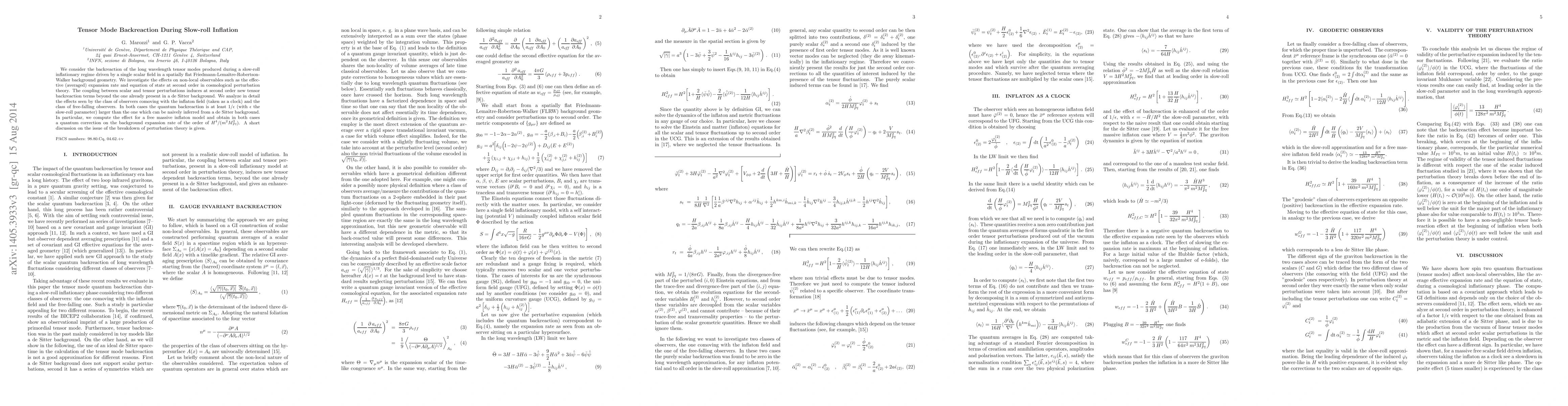 This paper examines the backreaction of tensor modes during slow-roll inflation, finding that quantum backreaction effects are significantly larger than in a de Sitter background. It computes these effects for a free massive inflaton model, revealing a quantum correction on the expansion rate of the order $H^4/(m^2 M_{Pl}^2)$.