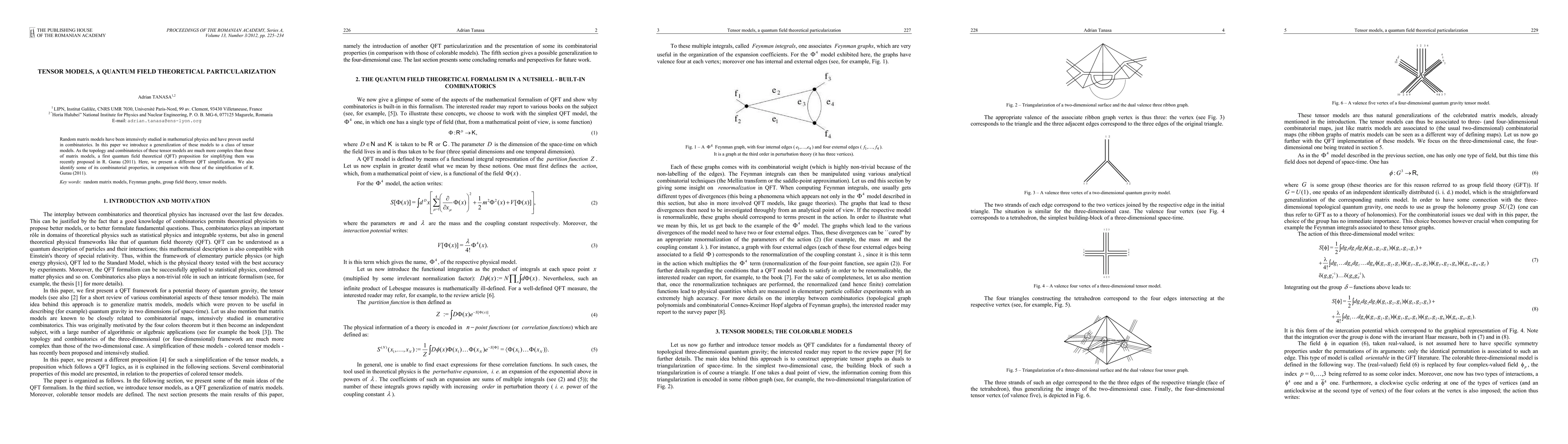 This paper reviews a novel quantum field theoretical approach to simplify tensor models, a complex generalization of random matrix models, offering a new perspective on their topology and combinatorics beyond traditional methods.