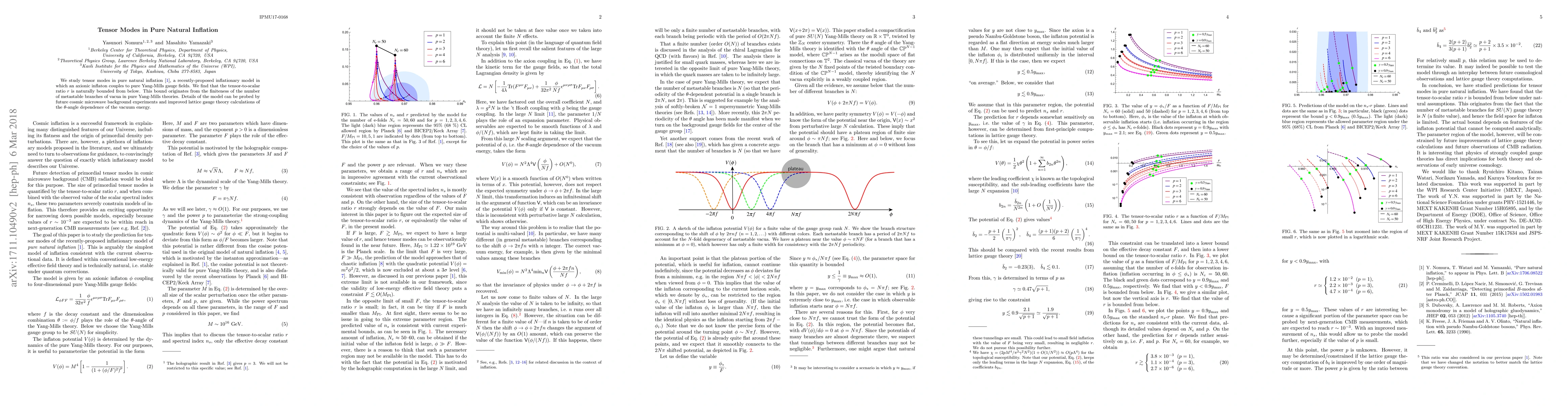 We study tensor modes in pure natural inflation (arXiv:1706.08522), a recently-proposed inflationary model in which an axionic inflaton couples to pure Yang-Mills gauge fields. We find that the tensor-to-scalar ratio r is naturally bounded from below. This bound originates from the finiteness of the number of metastable branches of vacua in pure Yang-Mills theories. Details of the model can be probed by future cosmic microwave background experiments and improved lattice gauge theory calculations of the theta-angle dependence of the vacuum energy.