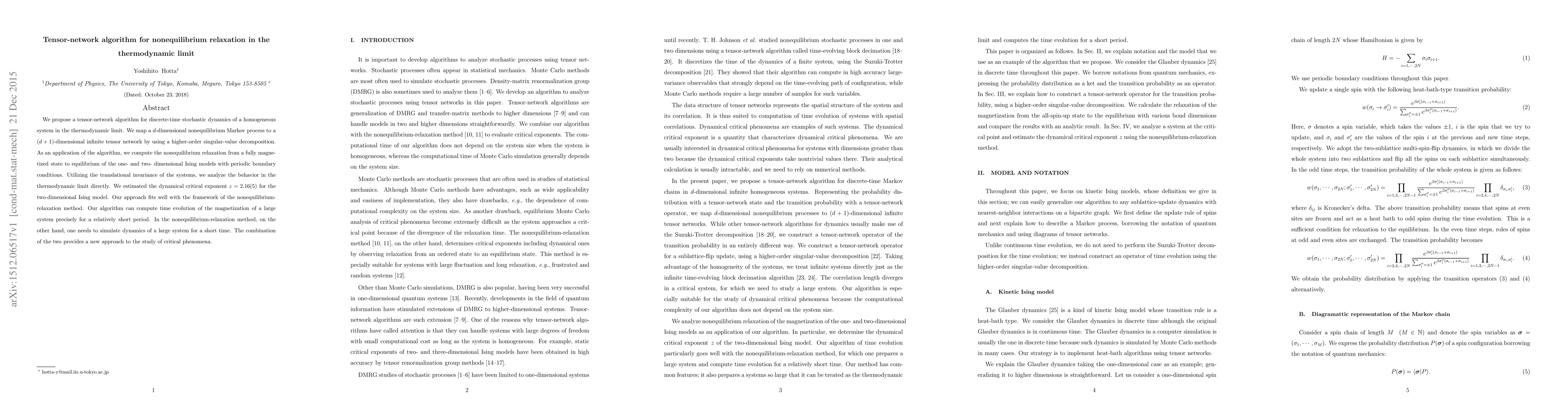 Researchers developed a tensor-network algorithm to study nonequilibrium relaxation in systems at thermal equilibrium, applying it to 1D and 2D Ising models, estimating a dynamical critical exponent of 2.16.