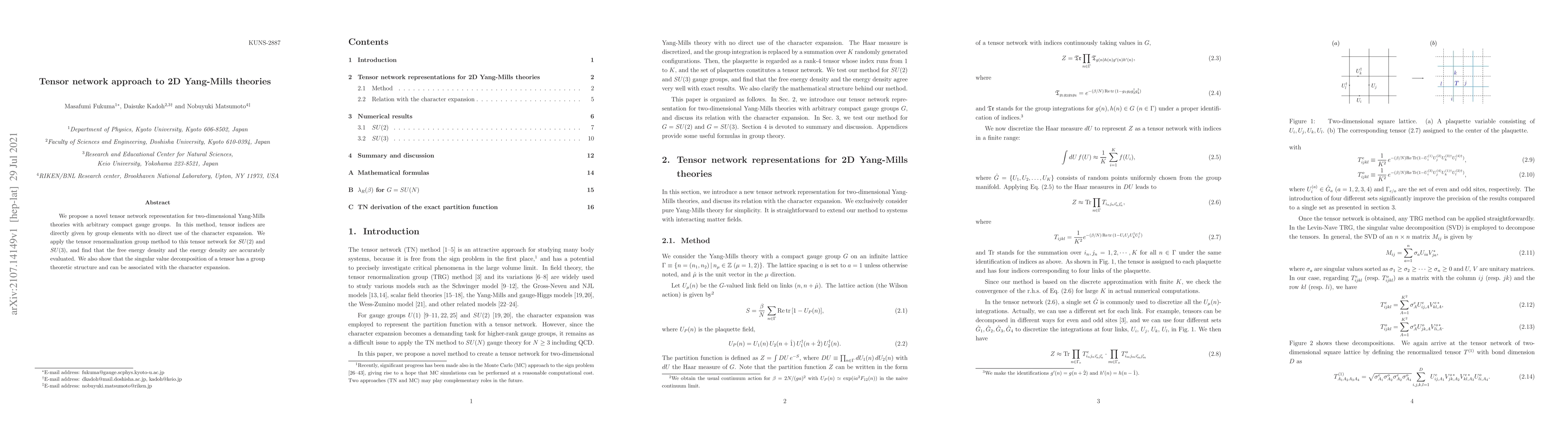This paper introduces a tensor network representation for 2D Yang-Mills theories using group elements directly, without character expansion, and applies tensor renormalization group methods to evaluate the free and energy densities for $SU(2)$ and $SU(3)$. It also reveals a group theoretic structure in the singular value decomposition of tensors.