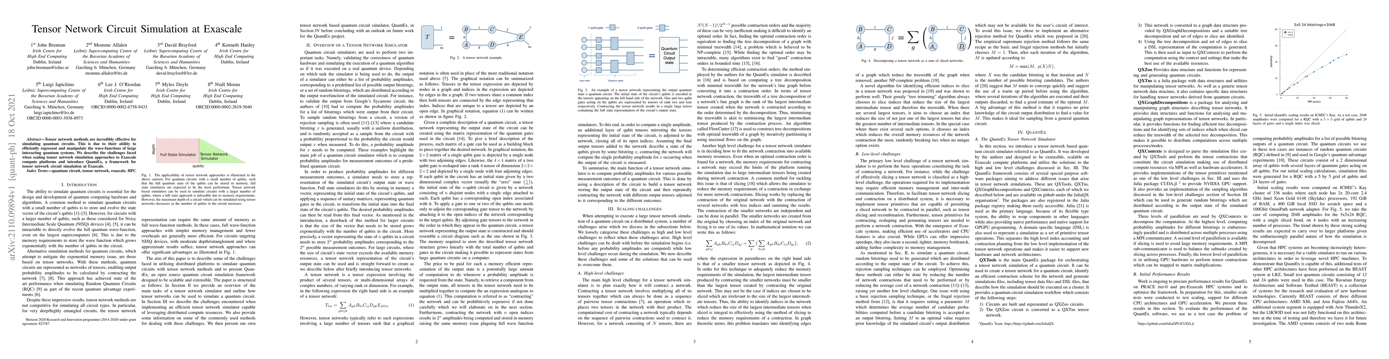 This paper discusses the challenges of scaling tensor network methods for simulating quantum circuits to Exascale compute platforms and introduces QuantEx, a framework designed to address these challenges and efficiently represent large quantum systems.