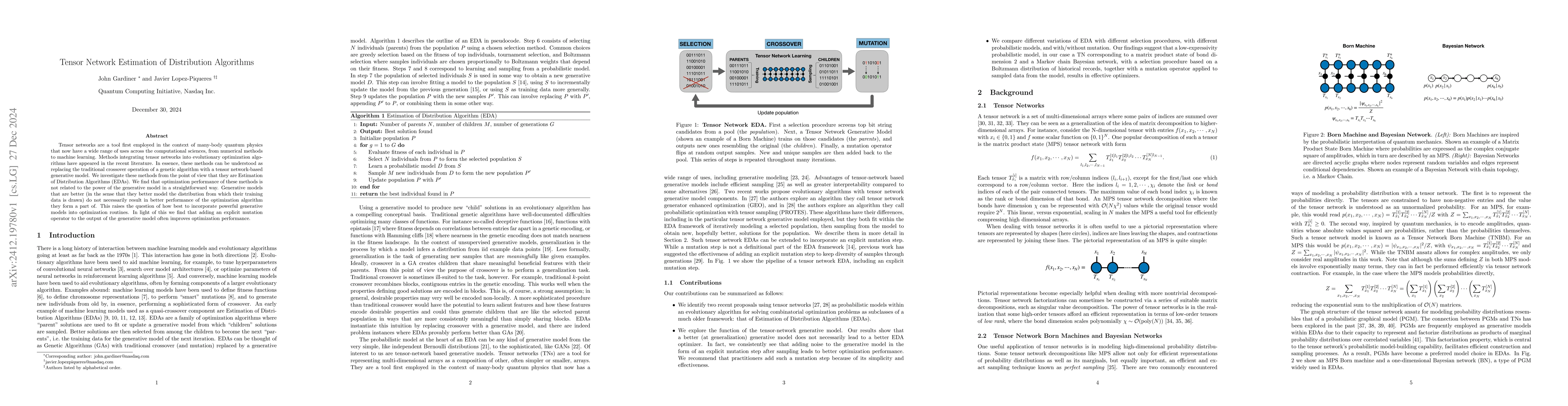 This paper explores the integration of tensor networks into Estimation of Distribution Algorithms (EDAs) to replace traditional crossover in genetic algorithms. It finds that while powerful generative models improve data distribution modeling, they do not always enhance optimization performance, suggesting that incorporating an explicit mutation operator alongside these models often yields better results.