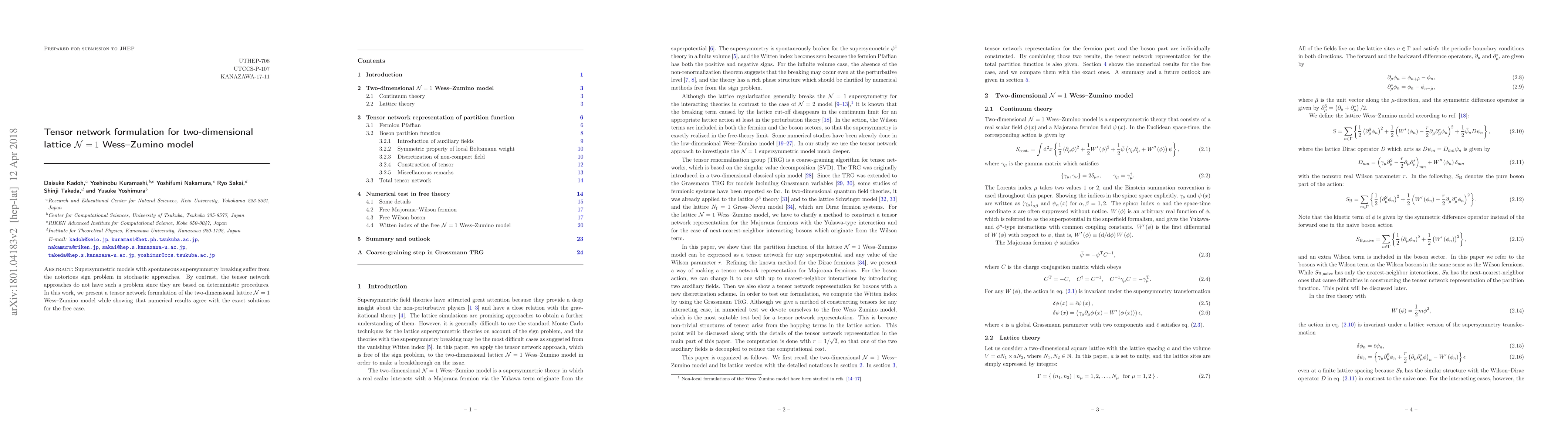 This paper introduces a tensor network formulation for the two-dimensional lattice $\mathcal{N}=1$ Wess-Zumino model, demonstrating that it avoids the sign problem inherent in stochastic methods and confirming numerical results with exact solutions for the free case.