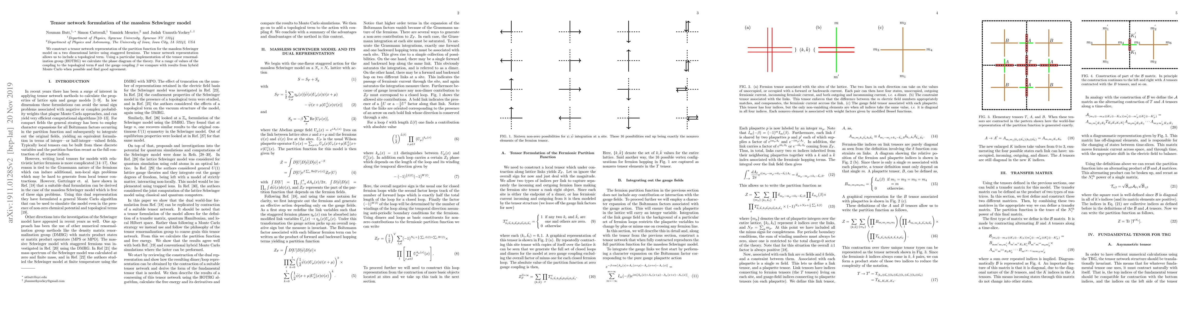 We construct a tensor network representation of the partition function for the massless Schwinger model on a two dimensional lattice using staggered fermions. The tensor network representation allows us to include a topological term. Using a particular implementation of the tensor renormalization group (HOTRG) we calculate the phase diagram of the theory. For a range of values of the coupling to the topological term $\theta$ and the gauge coupling $\beta$ we compare with results from hybrid Monte Carlo when possible and find good agreement.