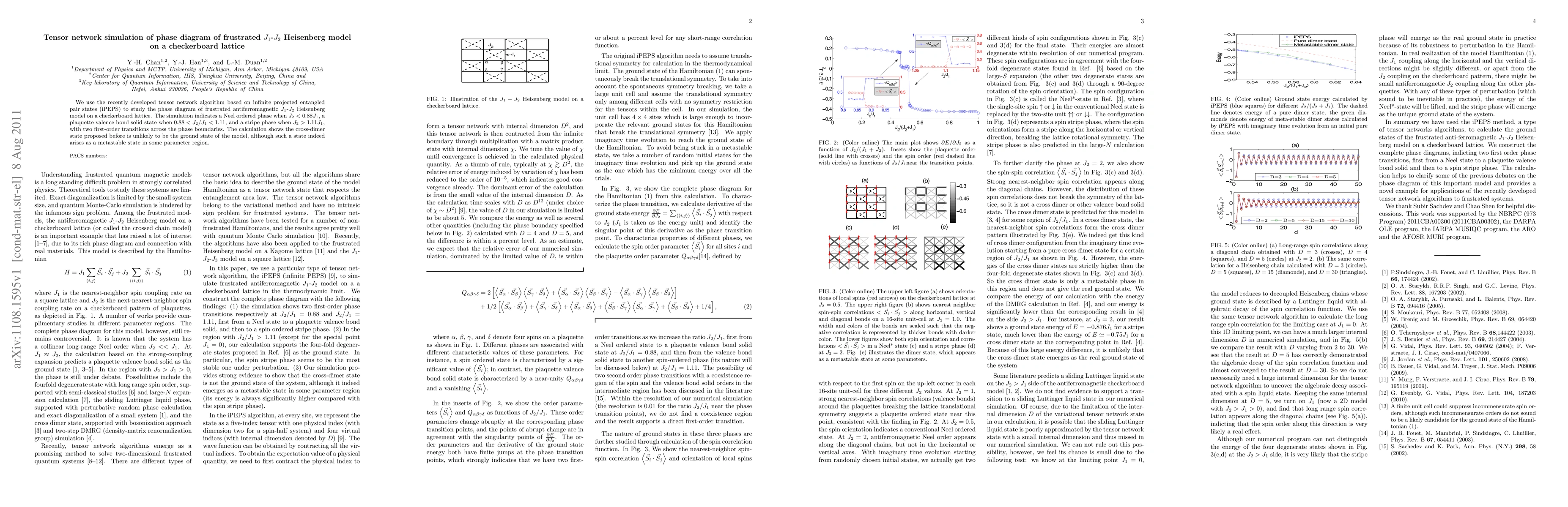 This paper uses tensor network simulations to explore the phase diagram of the J1-J2 Heisenberg model on a checkerboard lattice, identifying Neel order, plaquette valence bond solids, and stripe phases, with first-order transitions between them, and finds the cross-dimer state unlikely to be the ground state.
